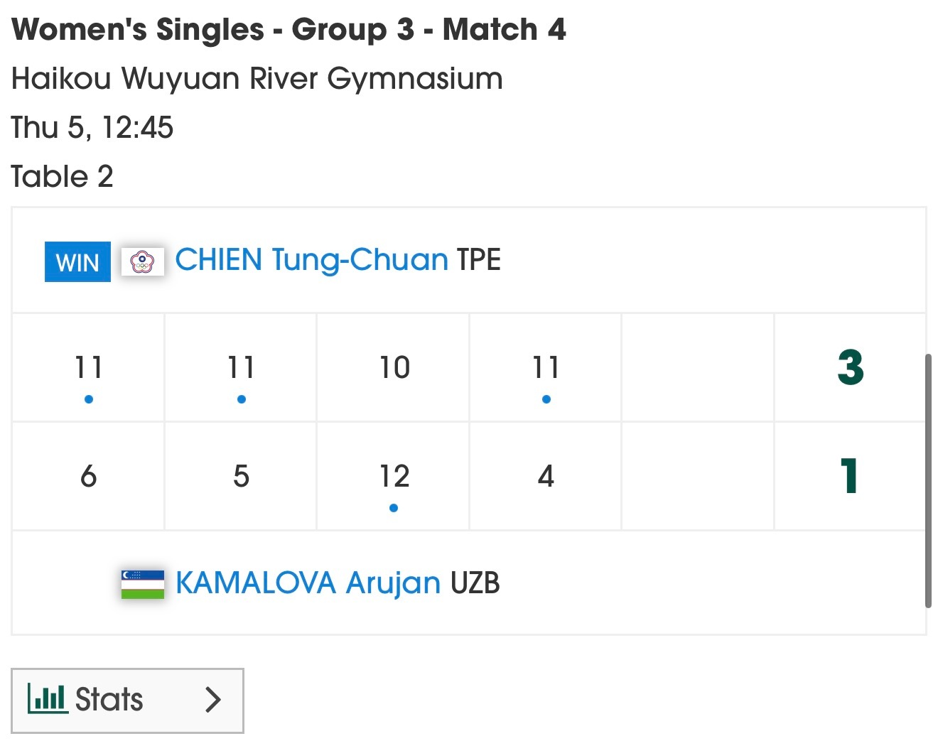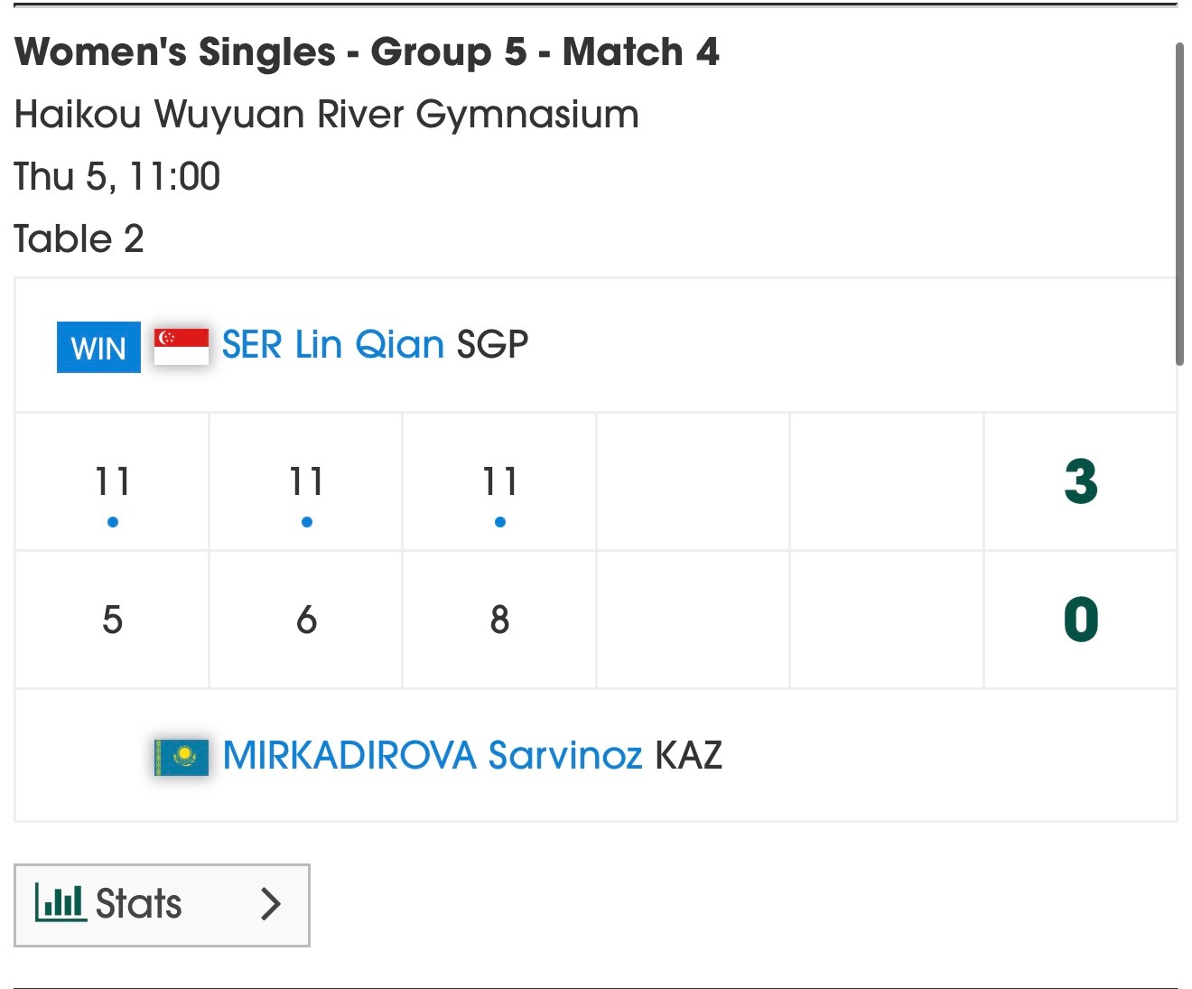 2026海口亚洲杯男女子组R2舒麟茜3-0米卡迪洛娃苏籽童3-0萨哈基安简彤娟3-1卡玛洛娃斯内特3-2舒莱比张佑安3-1阿尔哈德拉维