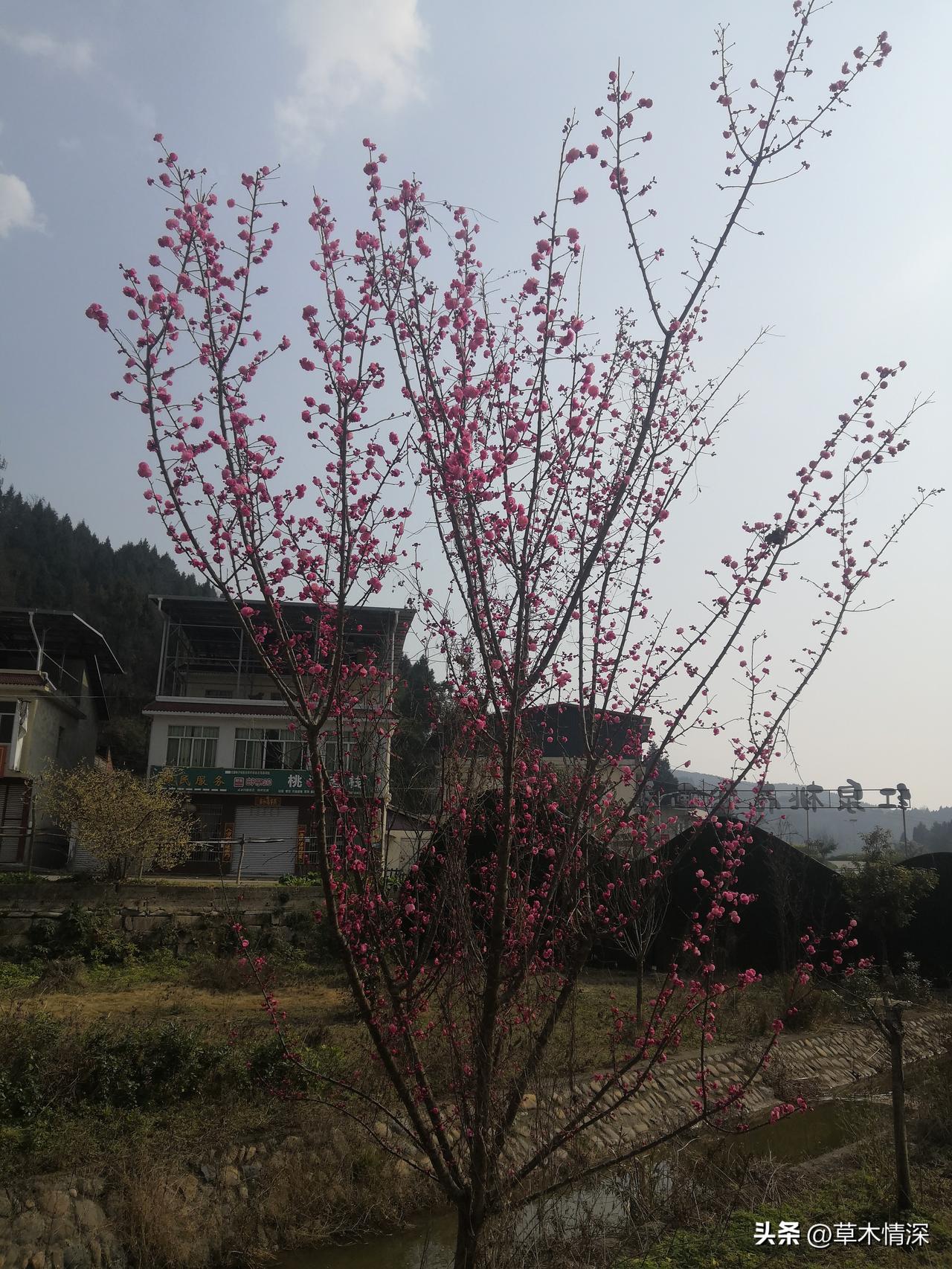 2026年2月5日下午,中江红泉桃花谷广场上发现,这个桃树已经开花了,2月的春天已经到来了,说他是万紫千红,那还是有点早,初春的太阳光照在大地上,把农村小,美丽乡村临时广场上这个这颗腊梅花,展现出来芳香的感觉,看着美丽的腊梅花朵红得那样鲜艳,不由自主的拍下了这张如春以来第一张照片,美的感觉。