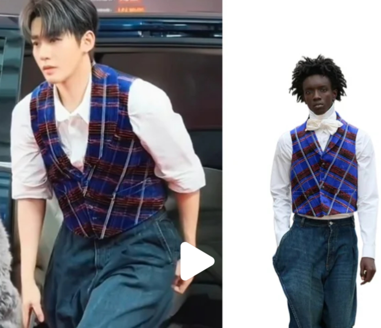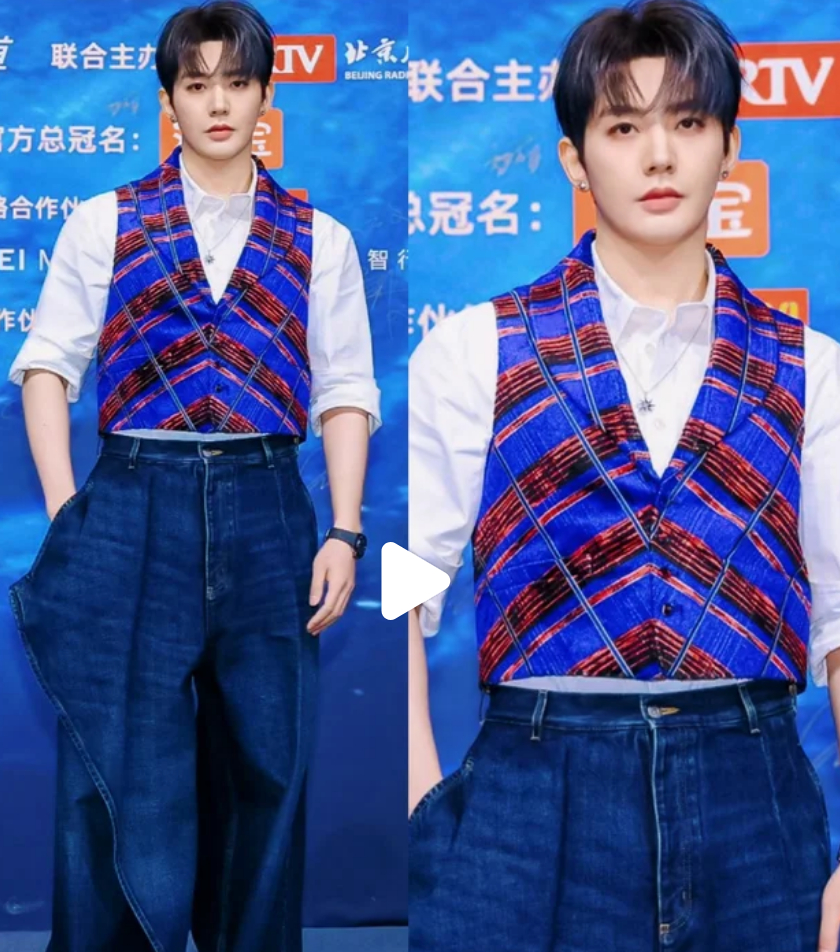 邓为这套造型是不是要封神了啊:丝绒格纹马甲:蓝红撞色复古显贵,肌理感加分;基础白