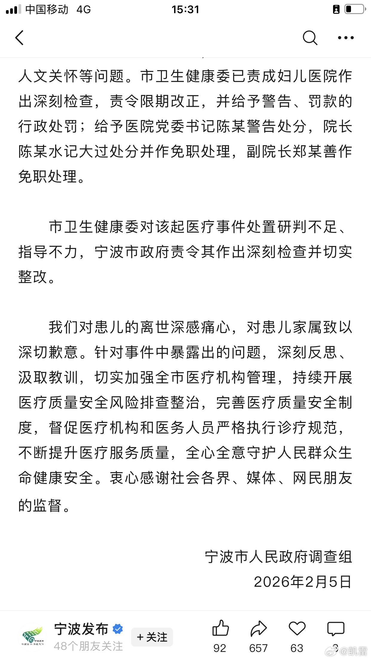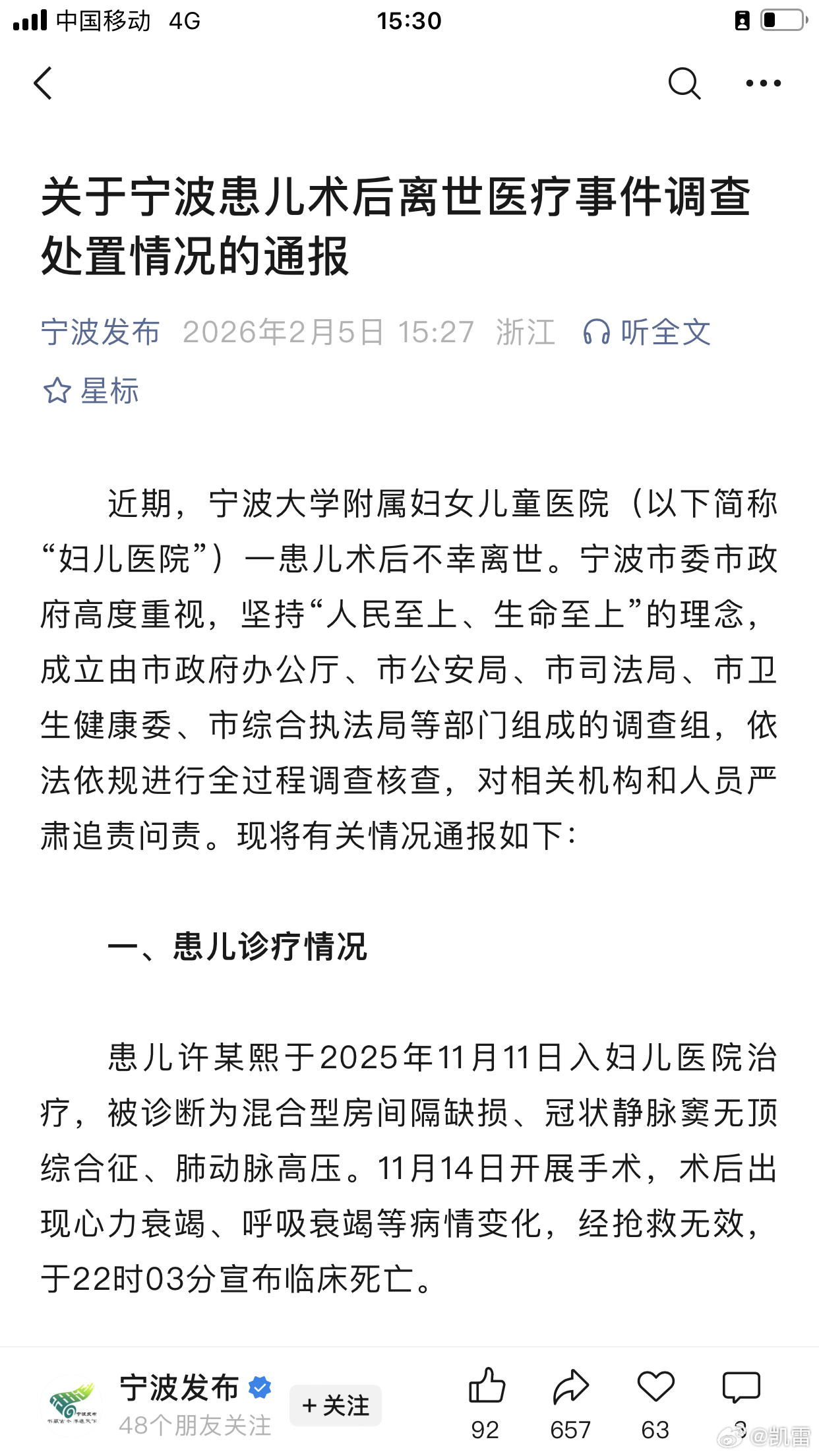 宁波女婴术后死亡事件调查处理结果发布 愿每一个生命都能被郑重对待小洛熙的离去,让