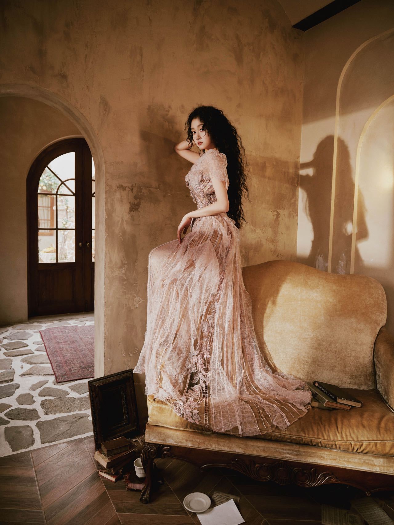 关晓彤es高定适配度微博之夜红毯造型 关晓彤 × 微博之夜微博之夜红毯,关晓彤Elie Saab 2025秋冬高定+FRED高级珠宝+Omega腕表,搭配大波浪卷,优雅迷人。