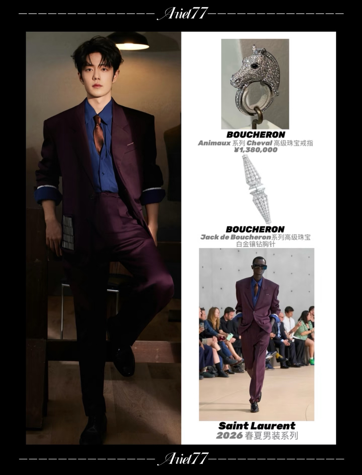 微博之夜红毯肖战红毯造型揭秘宝诗龙 Jack de Boucheron 系列高级珠宝胸针 Animaux 系列 Cheval 高级珠宝戒指采用白金材质并铺镶钻石马头戒指Carte Blanche, More is More 高级珠宝系列 In the Pocket 作品 ,除铺镶钻石外还镶嵌缟玛瑙 好贵的一身