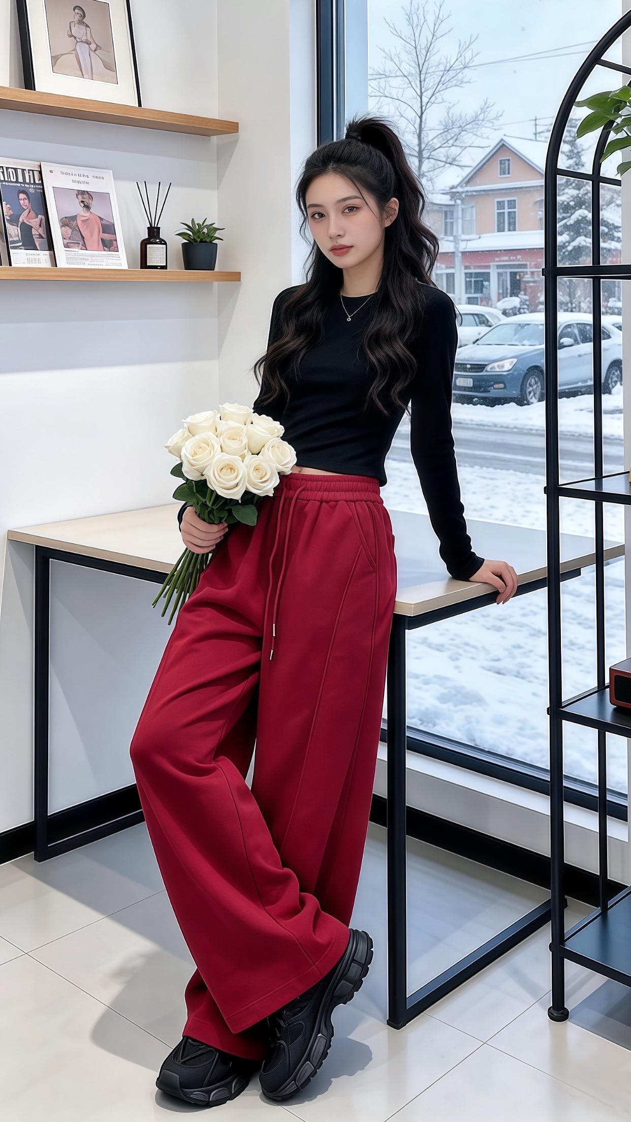 【春日限定温柔暴击】🌸谁说田野只能有麦浪?粉色毛衣+灰裤的慵懒穿搭,把春天穿