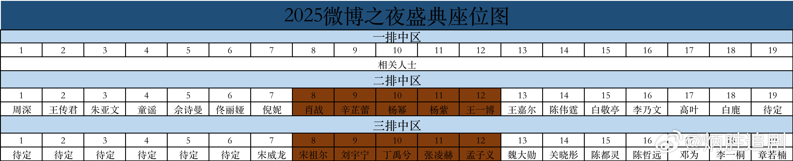 杨幂座位在二排C位哈,稳稳的C位,不要乱传图了期待杨幂今晚闪耀微博之夜!杨幂微博