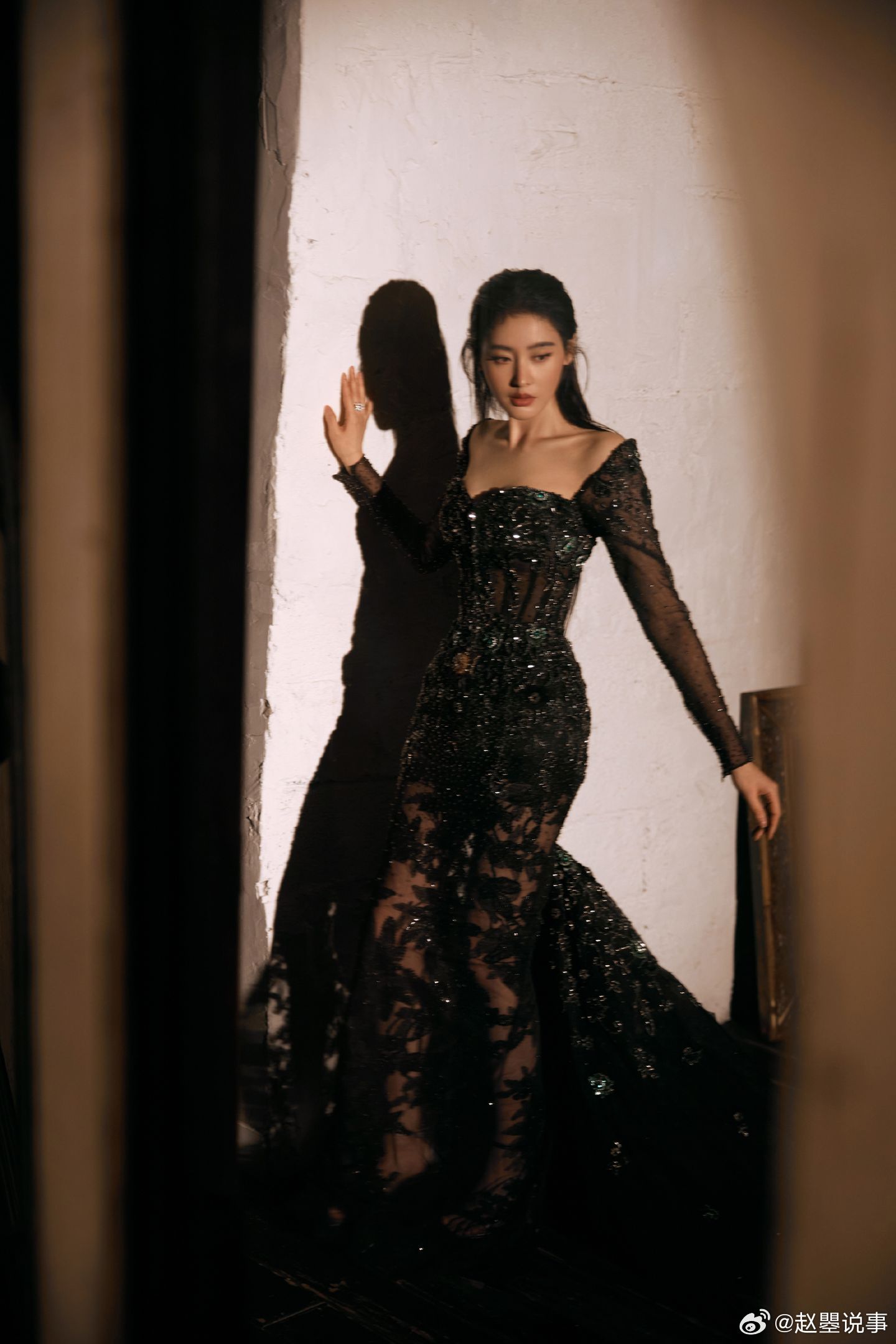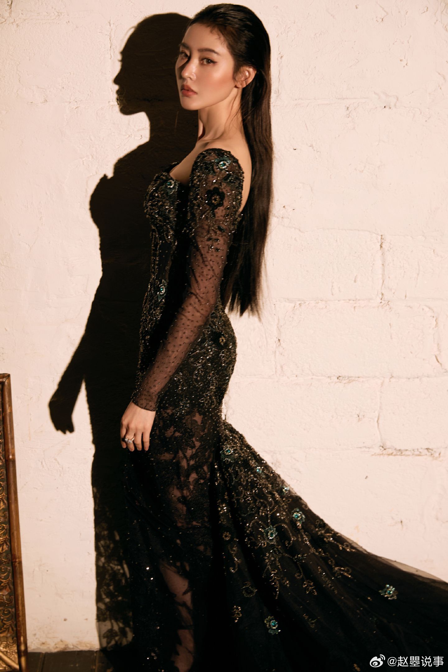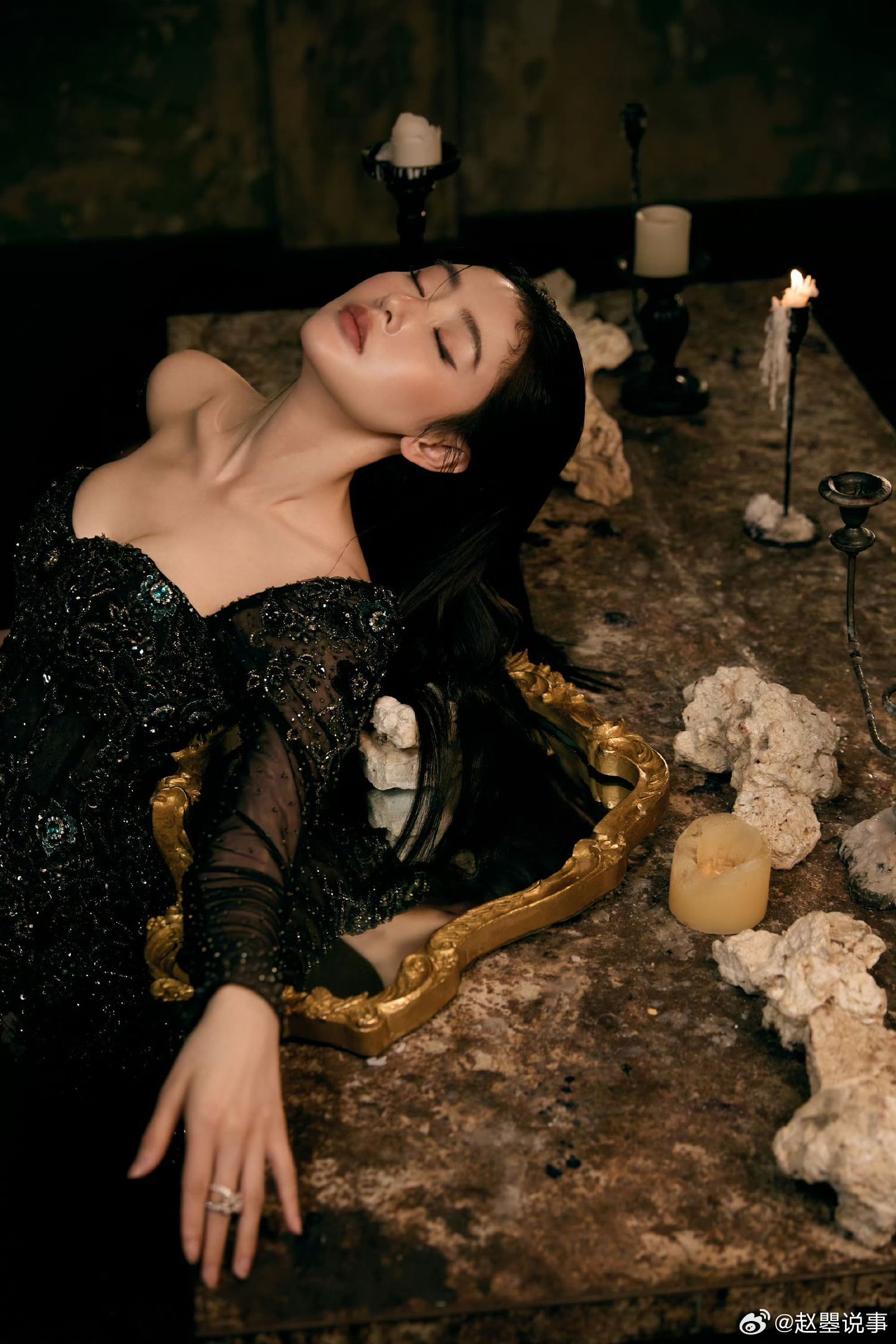 张天爱红唇黑裙造型女王来的 微博之夜的张天爱直接化身暗夜女王∽暗色礼裙缀满细碎