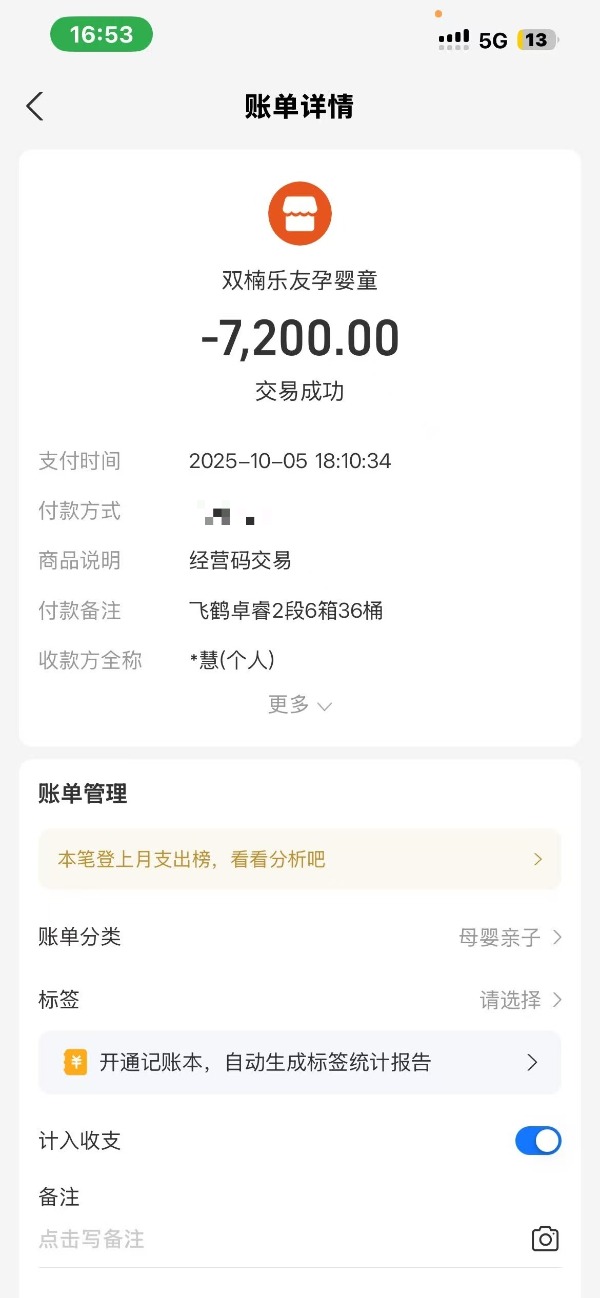大皖新闻记者注意到,在相关社交平台上,众多宝妈提供的交易截图显示,她们通过店员提供的二维码支付了预存款,金额从数千元至上万元不等。这些二维码的商户名称虽显示为“双楠乐友孕婴童”,商品说明为“经营码交易”,但收款方全称却指向涉事员工某慧(个人)。