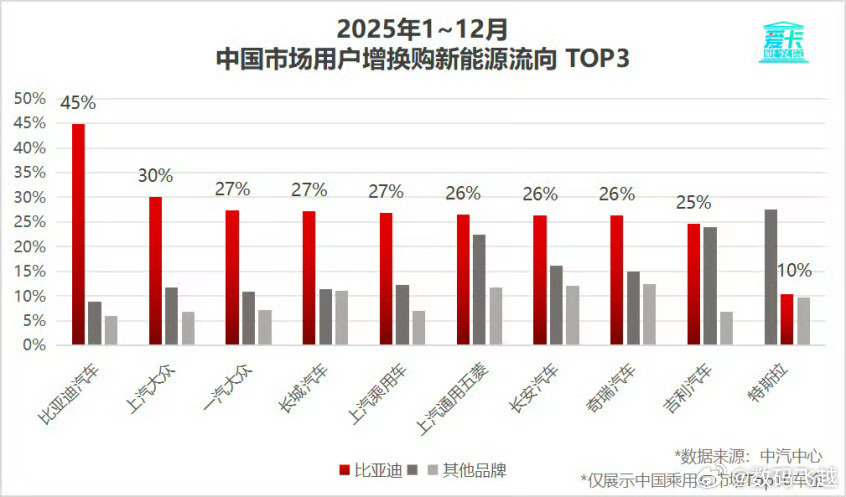 2025年国内车企销量榜单出炉,比亚迪以超460万辆销量蝉联国内车企、品牌销量双冠,并连续4年登顶全球新能源汽车销量冠军。更亮眼的是,其老车主复购率达30.55%,位居行业前十车企榜首,复购率印证品牌力。高复购率背后,是比亚迪长期坚持技术创新与产品布局。14年间13年研发投入超净利润,2025年前三季度研发投入437.5亿元,刀片电池、DM-i、天神之眼等技术持续落地,夯实产品竞争力。同时,王朝、海洋网构筑基本盘,仰望、腾势、方程豹高端品牌覆盖细分市场,成交均价稳步提升,满足用户增换购升级需求,形成强大用户粘性与复购闭环。在新能源增换购市场,比亚迪形成显著“虹吸效应”,成为用户置换首选。高复购率不仅印证其品牌力与市场统治力,更展现中国品牌从性价比取胜到价值引领的转型,为行业提供高质量发展样本。