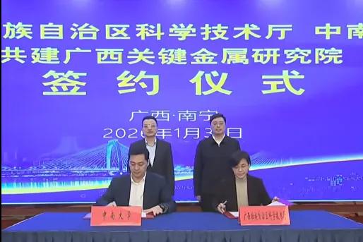 近日,广西壮族自治区与中南大学在南宁举行广西关键金属研究院启动座谈会暨合作签约仪式,共同宣布广西关键金属研究院有限责任公司正式成立。广西壮族自治区主席韦韬主持会议并讲话,中国工程院院士、中南大学校长李建成出席活动并见证签约。
