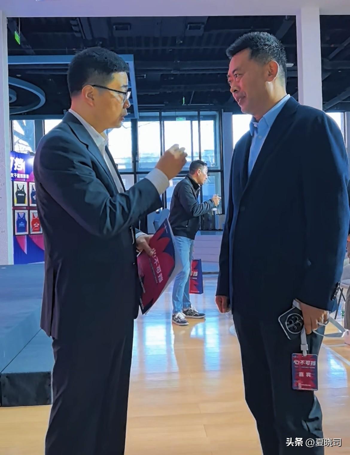 WCBA女子篮球联赛相关会议间隙,中国篮协主席郭振明与山东高速篮球俱乐部董事长胡克生在场地旁交流,包括俱乐部男女篮、未来之星张子宇的培养以及俱乐部品牌建设等。对于这些话题,郭振明主席分享了自己的观点与思路,并表达了对山东的认可。