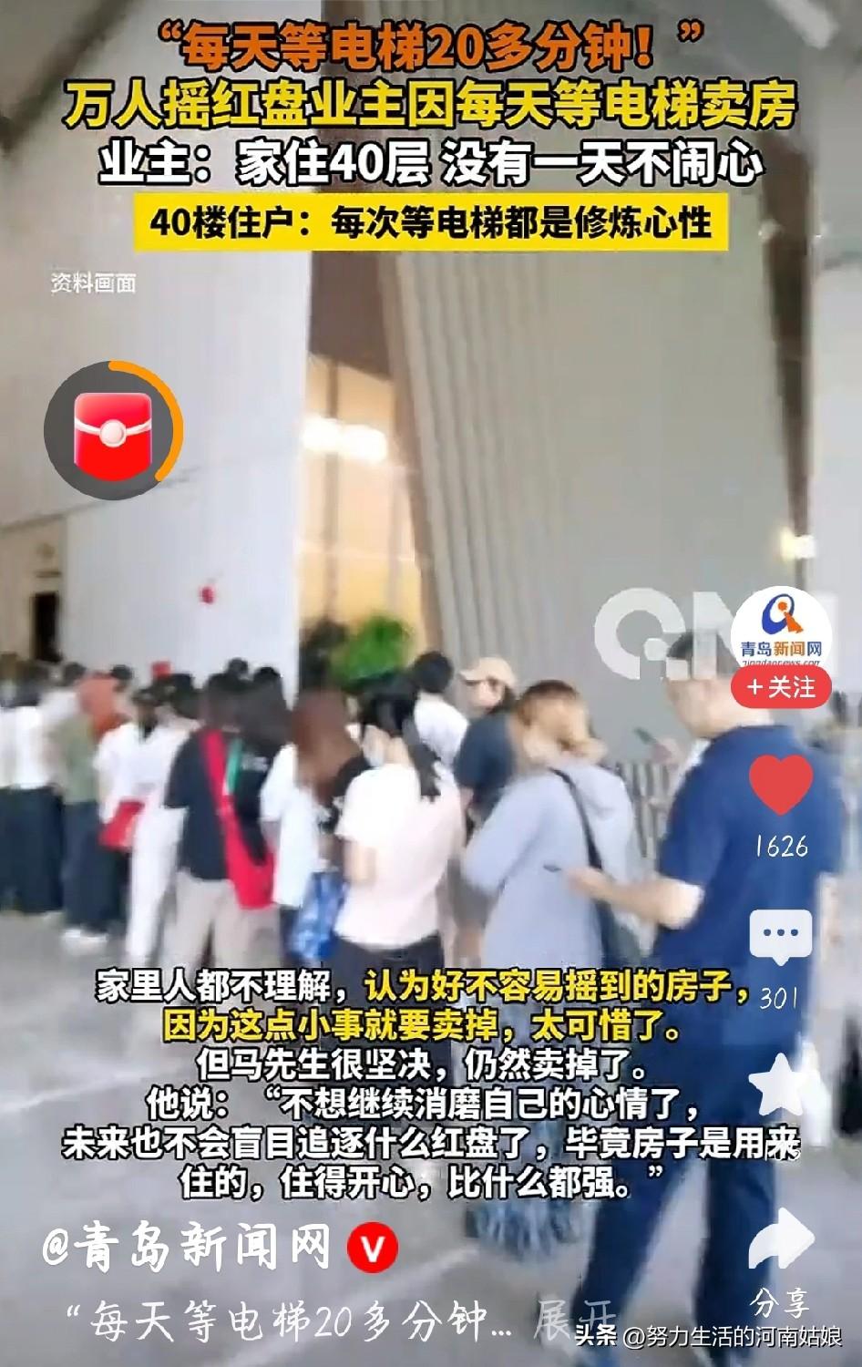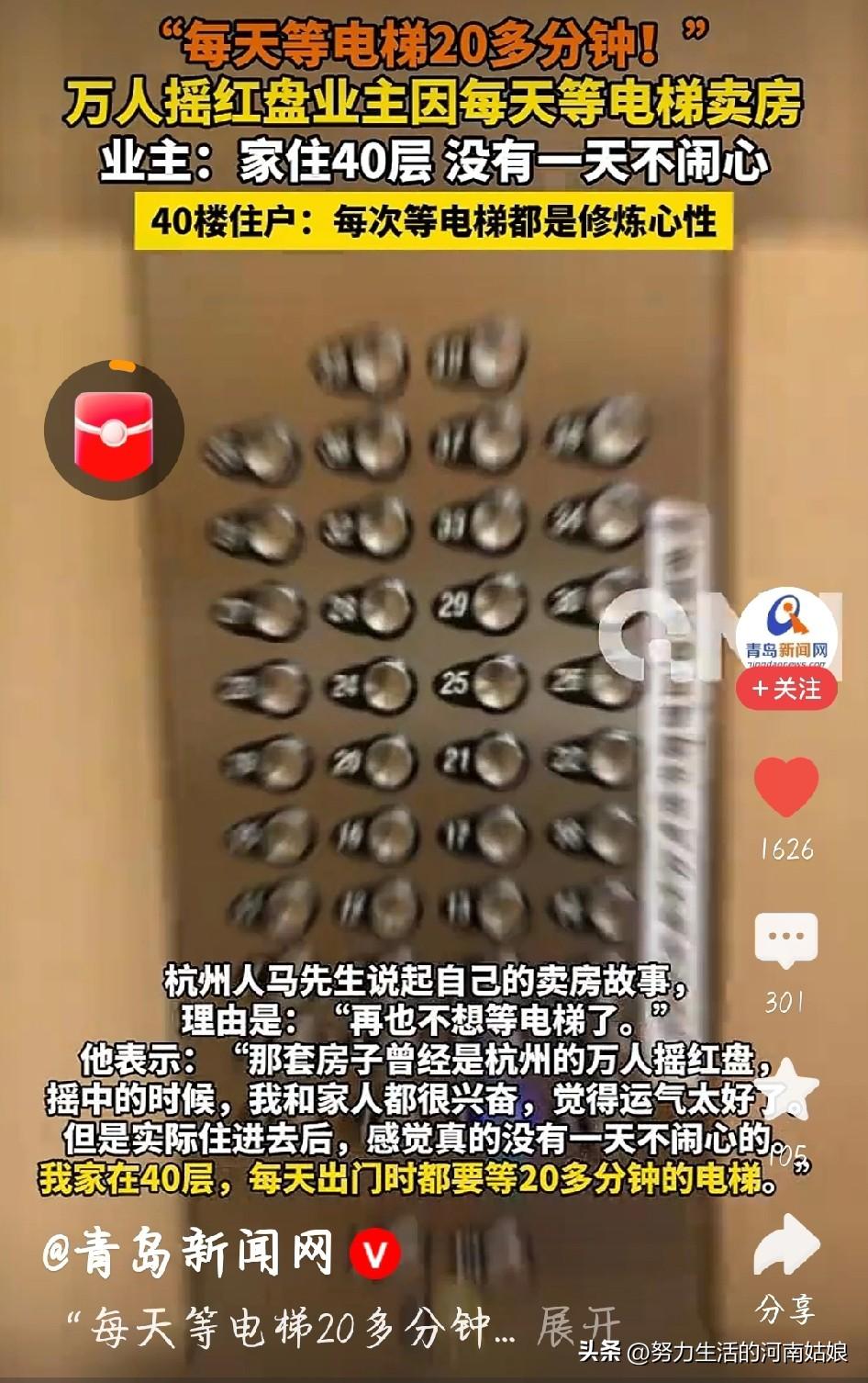 40层等梯20分钟,红盘直接亏本卖!超高层的坑太磨人 大哥摇中40层超高层红盘,本以为捡了宝,入住才知全是坑!早高峰等电梯最少20分钟,楼栋电梯数少,但凡有台维保、出故障,剩下的根本不够用,老人孩子出门得提前一小时,上班天天迟到扣钱。 除了电梯糟心,公摊还大,得房率低,花的钱大半买了过道;楼层高水压不稳,用水忽大忽小;物业费比低层贵不少,后期电梯、外墙维保还得额外掏钱;遇上停电停水,爬楼直接劝退,住得越久越闹心,咬牙亏本也要卖! 超高层看着风光,住起来全是日常琐碎的难,买房真别只看楼层和热度,实用宜居才是真!你家小区有这些问题吗?评论区说说高层电梯房 电梯楼 男子住40层因每天等电梯20分钟卖房, 超高层 图片截图于网络
