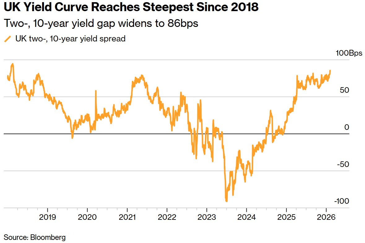 英国收益率曲线达到2018年以来最陡峭的水平