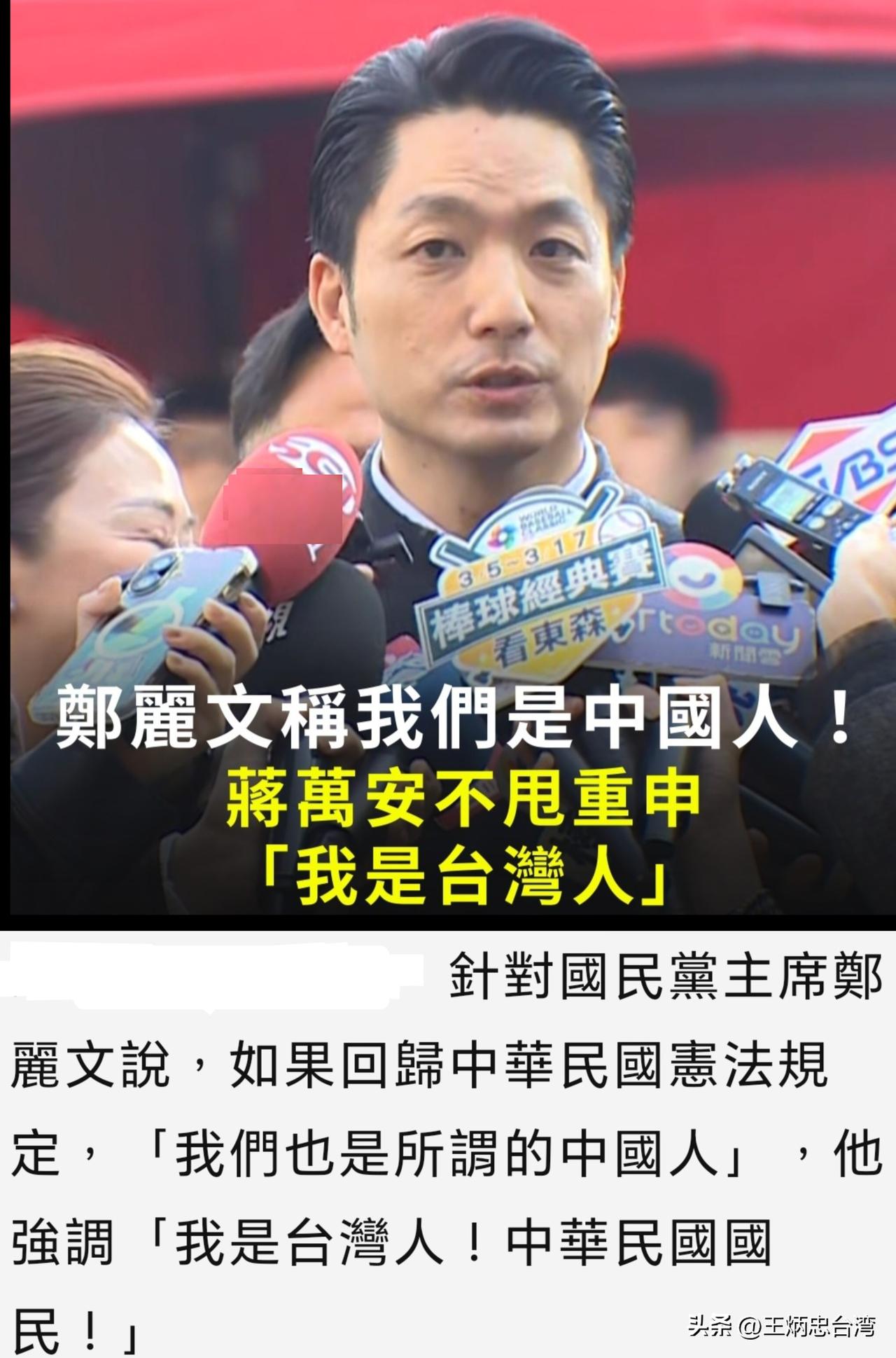 赖清德说,如果有人欣然接受九二共识,表示他是中国人。 蒋万安被问,郑丽文说“我们是中国人”,那他认为自己是台湾人还是中国人?蒋万安回,他一直强调自己是台湾人,是“中华民国国民”,就是绝口不认中国人。 蒋的这套回答,倒也并不奇怪,因为他想走的就是马英九模式,而马英九从2008年到2016年,一直也都这么说,就是不能认中国人。 只不过,马英九在当台北市长时,还敢说自己是中国人,现在蒋万安还没当“总统”,已经不敢说。另外,马英九在卸任“总统”后,就又重提自己是中国人。 其实,台湾先贤蒋渭水、林献堂,通通认同自己是中国人,还强调要唤起台湾民众的中国意识。台湾歌仔戏天王杨丽花,也多次说自己传承的就是中国人的忠孝节义。在台湾民间,哪怕是我的故乡台南,本省人私下聊天,也常脱口而出“我们中国人”。 还有,蒋经国晚年说“我是中国人,也是台湾人”,蒋孝严在大陆也多次说“我们中国人”。更别说国民党至今的全名,仍然叫做“中国国民党”。 何以被民进党吓唬一下,就自我否定了?