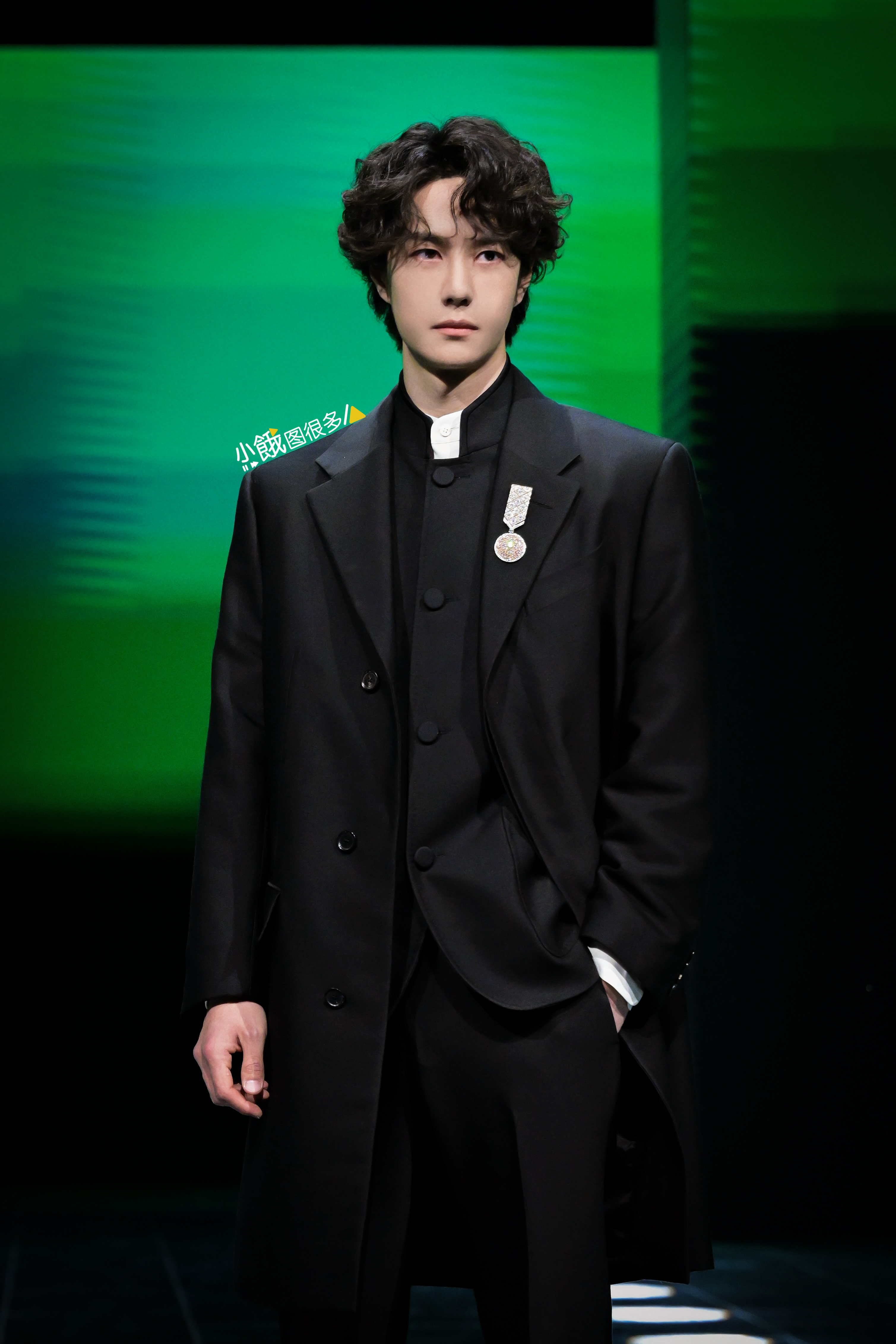 王一博 中山装 20260205 补一组王一博卷毛造型亮相微博之夜红毯高清图集4p,中山装外搭长款外套,今天的红毯像T台!