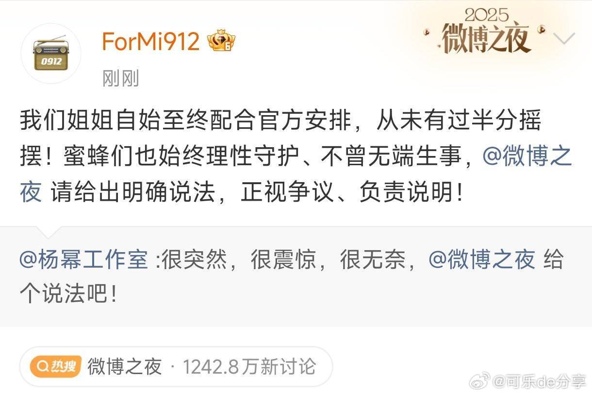 杨幂工作室好刚,好像因为座位问题微博之夜