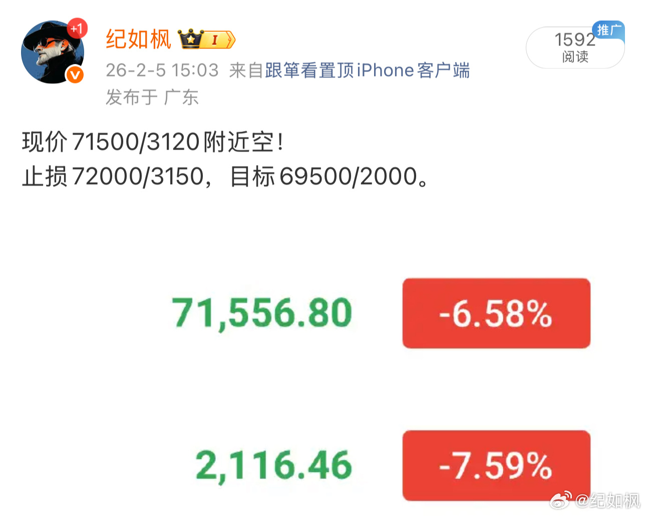 71500附近追🈳,目前也是1500點左右。给的止损精准防住 现价70000附