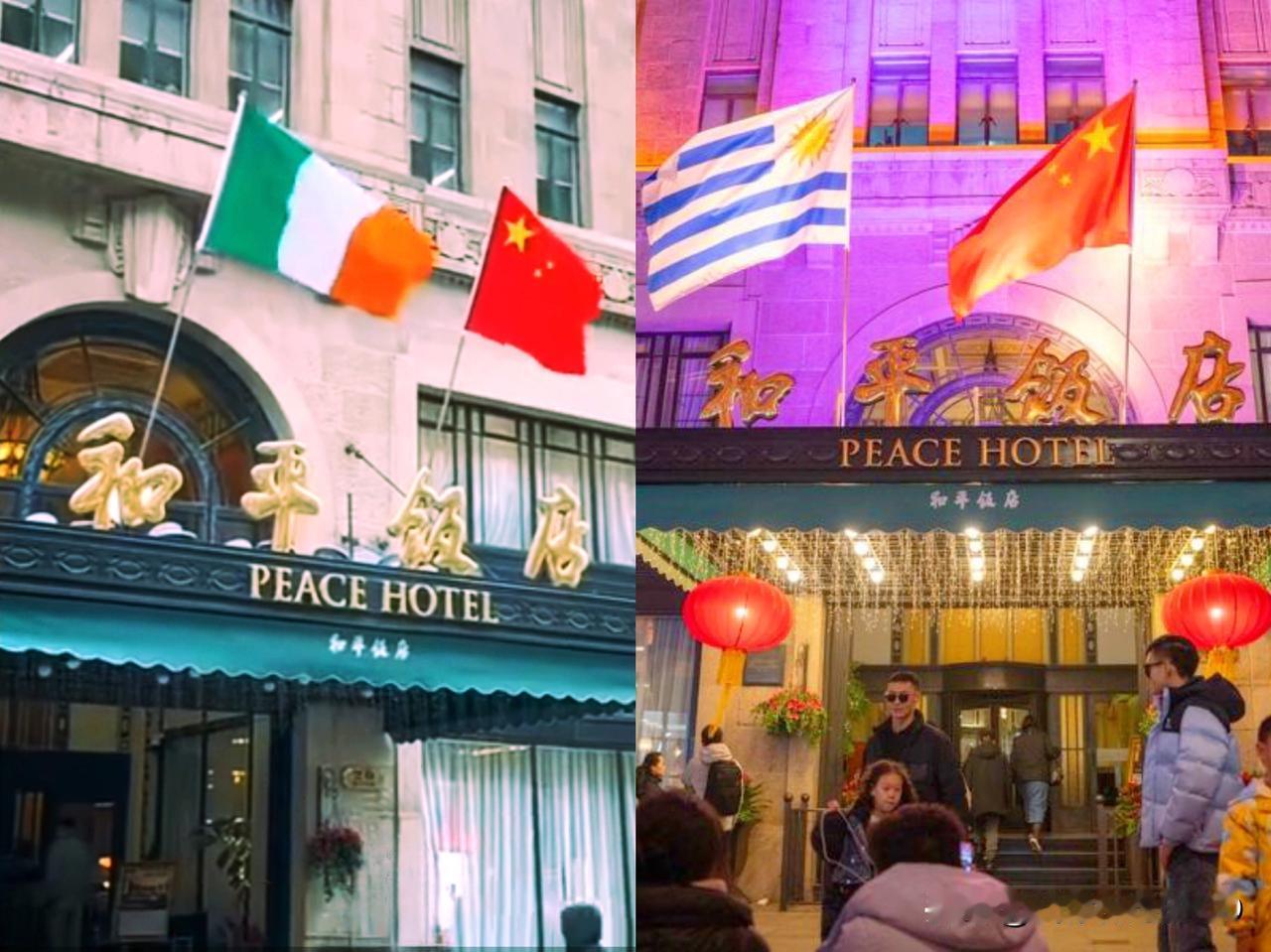 近一个月,爱尔兰总理、英国首相、乌拉圭总统相继到访“远东第一楼”——和平饭店,这栋77米高、拥有近百年历史的建筑可不简单! 上海和平饭店,原名华懋饭店,由英籍犹太人维克多·沙逊爵士投资建造,1929年建成。位处中英金融合作区核心区域,是上海外滩“万国建筑博览群”中的佼佼者,现为国家级重点文物保护单位。 和平饭店运用芝加哥学派哥特式设计风格,采用钢混框架结构,平面呈A字形,最显著的特征是19米高的墨绿色金字塔形铜顶,拥有的九国套房是其引以为傲的经营特色。 1956年,上海市将华懋饭店(北楼)和汇中饭店(南楼,1908年建成)合并经营,并命名为和平饭店,象征和平之意。 和平饭店