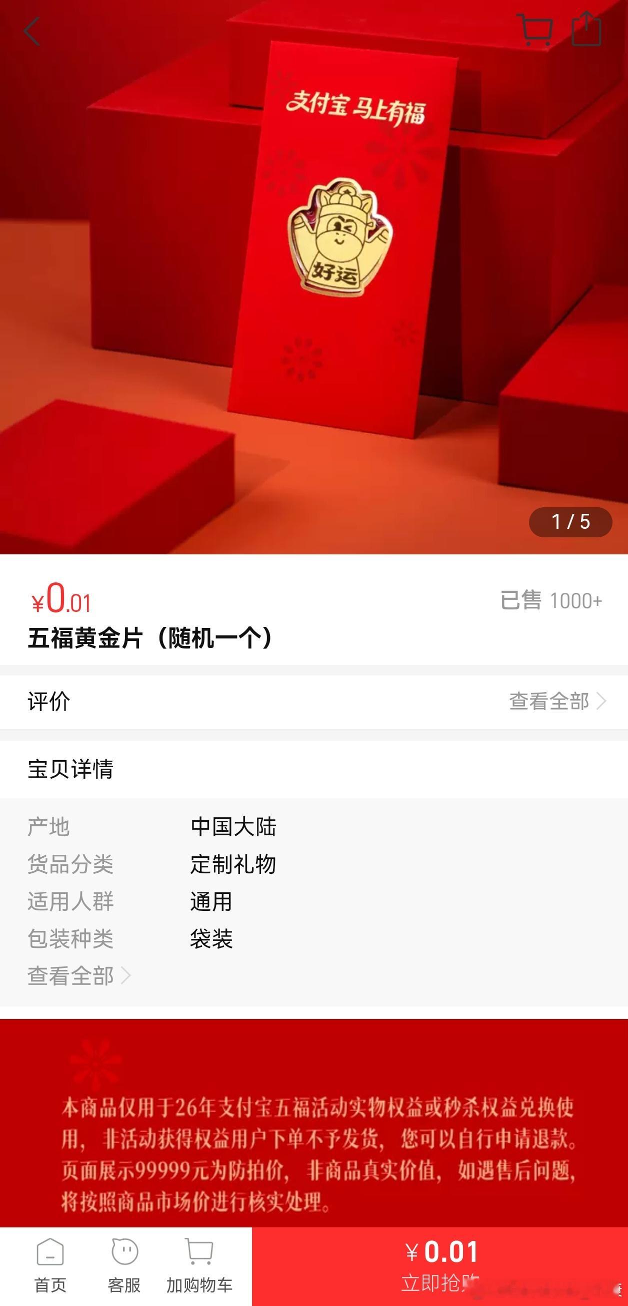 五福黄金片,一分钱到手,这玩意真的是黄金?