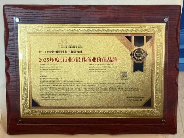 1月31日,2025(第九届)博鳌企业论坛在海南隆重开幕。本届论坛以“向新而行质领未来”为主题,汇聚政、企、学、研各界精英,共同探讨新质生产力的培育路径与高质量发展实践。陕西杜康酒业集团有限公司凭借深厚的品牌积淀、卓越的产品品质,荣获大会颁发的“2025年度(行业)最具商业价值品牌”殊荣。