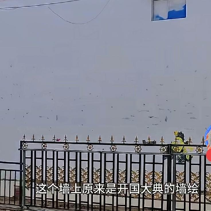 一夜之间, 河南商丘吴营村 那幅火遍全网的开国大典墙绘,被人连夜刷成了光秃秃的大白墙。 画师吴承言看着自己的心血被抹掉,站在铁门边抹眼泪的样子,真的让人心里堵得慌。 这墙绘可不是普通的画,它是吴承言花了好几天,一笔一笔画出来的,更是吴营村的骄傲。 靠着这面墙,村子成了网红打卡地,元旦三天就来了24万人,不少村民摆摊都日入过万。可现在,一切都没了。 更让人寒心的是,这事干得有备而来,几个人趁着深夜,避开监控,动作娴熟地刷完就跑。 面对村民的质问,相关人员只轻飘飘一句“沟通不到位”。这哪里是沟通问题,分明是对心血的践踏,对集体利益的漠视。 好好的乡村振兴,怎么就容不下一幅让全村人脸上有光的画? 这背后到底动了谁的蛋糕?你觉得,这墙绘还能恢复吗?天安门墙绘 吴营墙画 吴营村网红墙 吴营村墙画 吴营村文化墙 商丘墙画 吴营墙绘