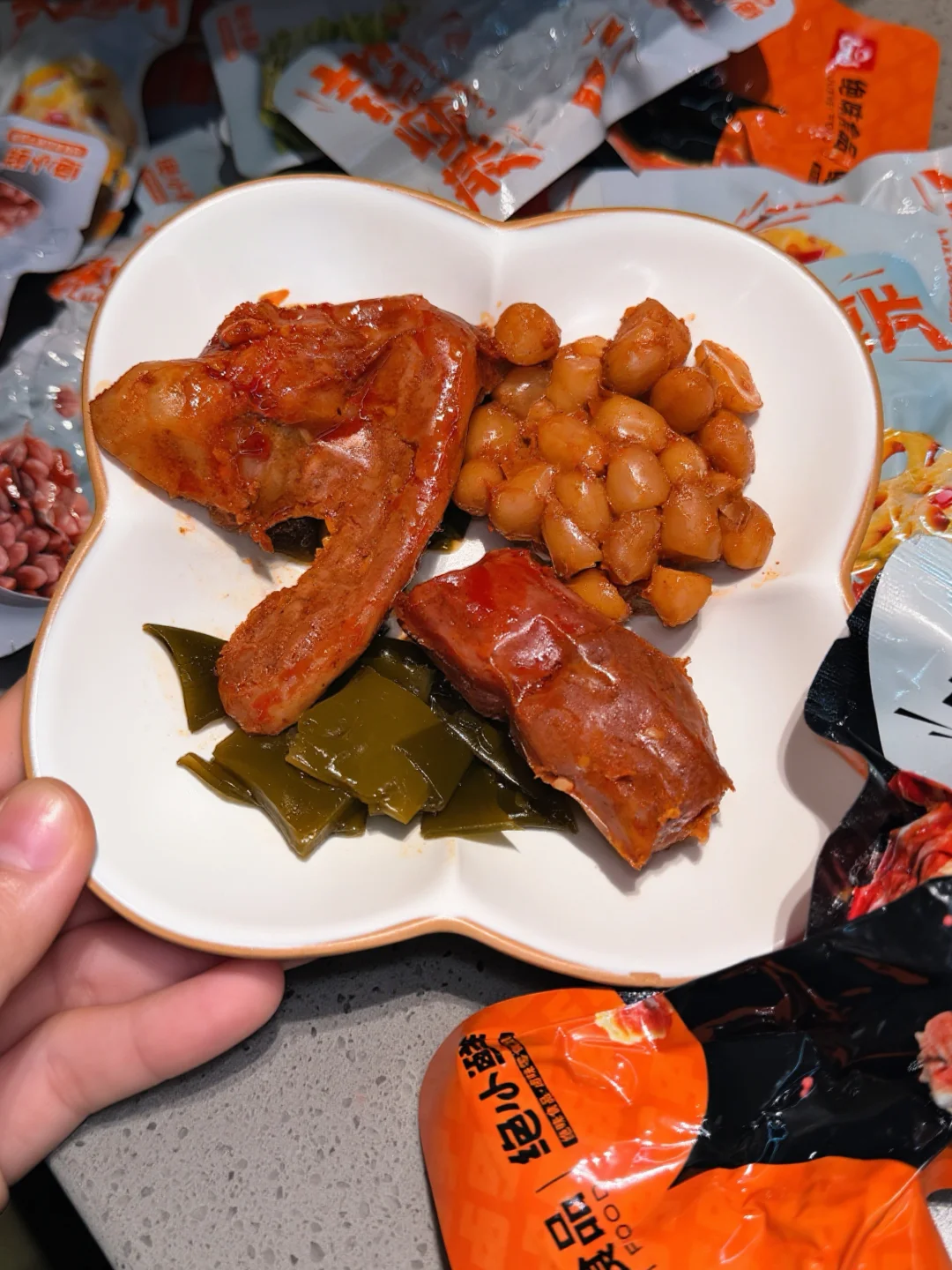 搭配礼盒里的解馋素菜,辣卤海带和藕片!荤素搭配营养均衡,南北通吃不挑口味🎶