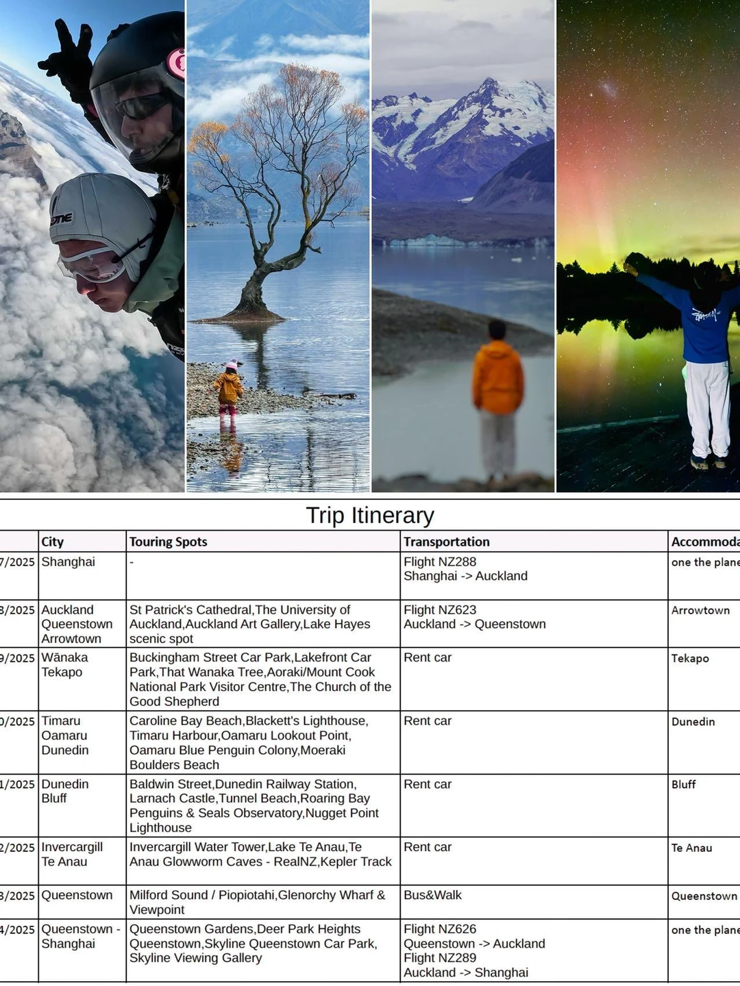 D1:国内➡️奥克兰➡️皇后镇➡️箭镇(根据航班时间也可以分成2天)