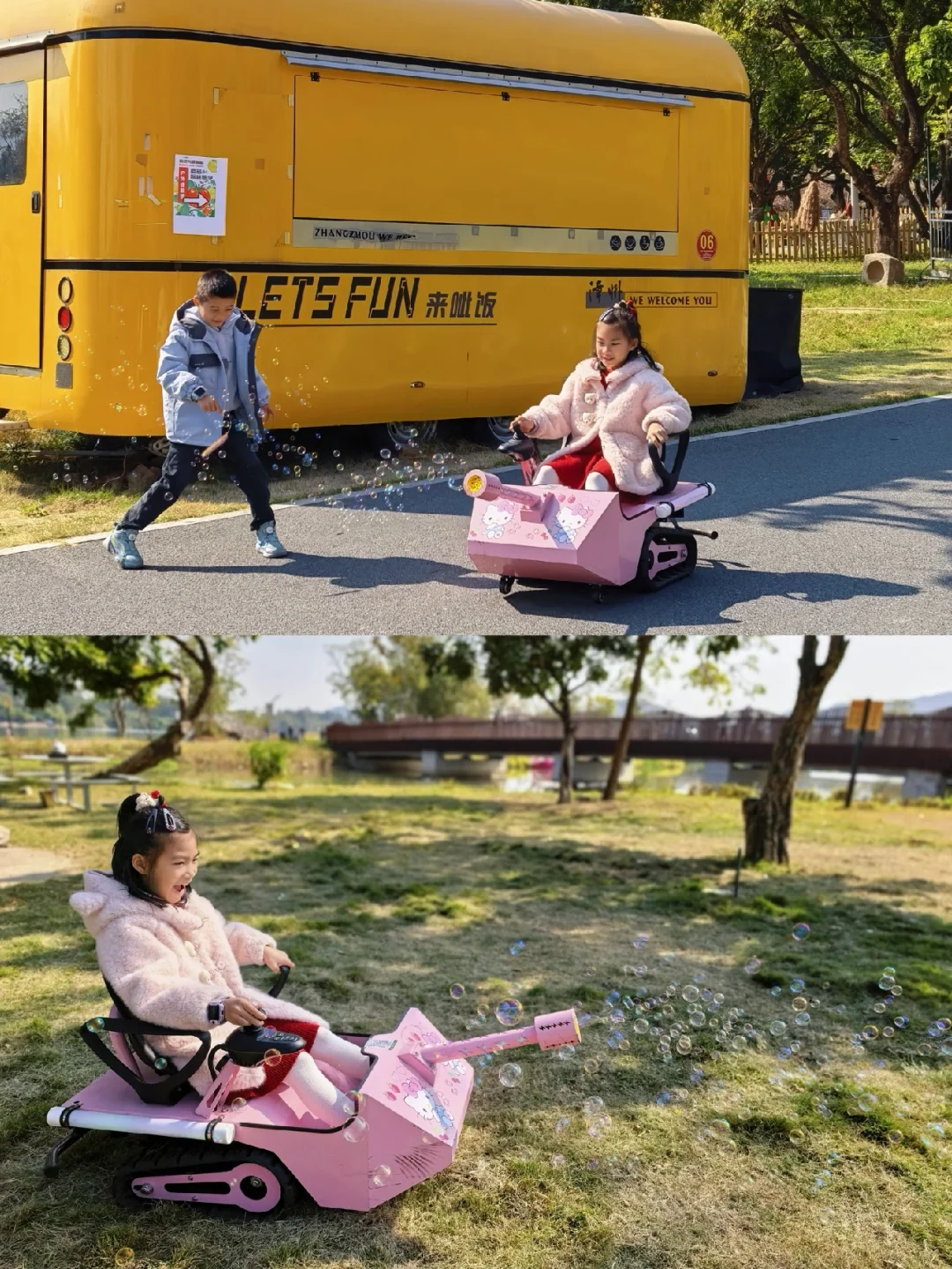 6️⃣园区内的网红歪脖树、白色栈桥、湖边长堤都是绝美打卡点,很适合拍亲子合影;