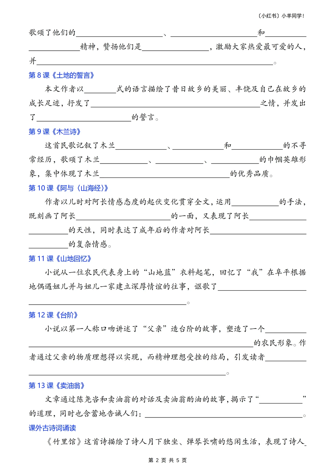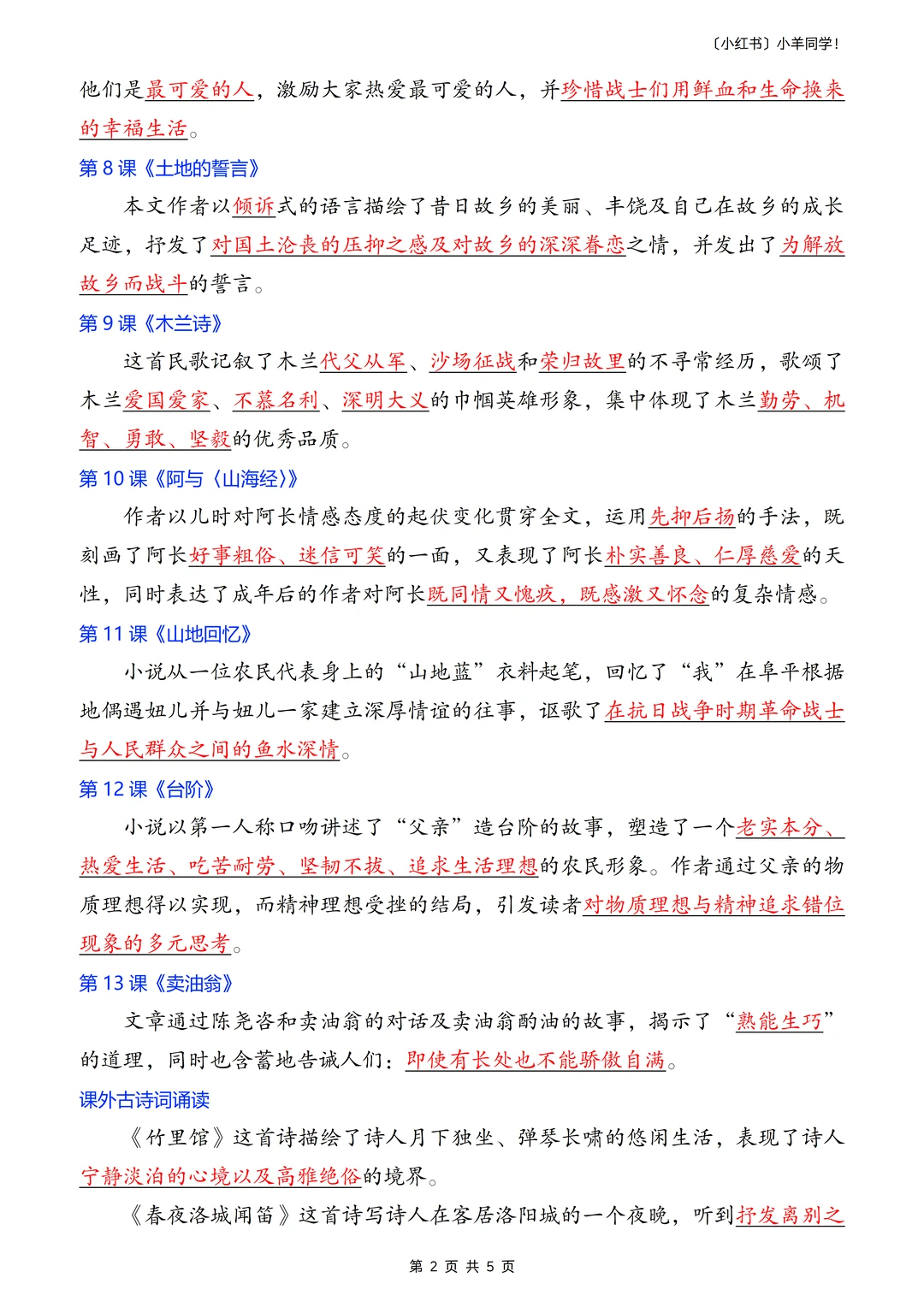 七年级宝子必存!语文课文灵魂攻略来啦💥 七下语文春季新版适配,课文中心主旨=课文精髓! 不管是主题概括、中心思想,吃透它,新学期语文稳赢✨ 精简好记,赶紧码住,开学冲鸭! 两份文件,一份空白5页,一份答案5页。 店铺左下角获取完整版~
