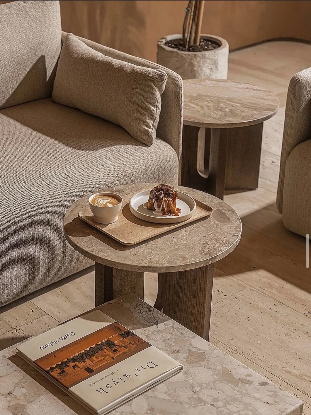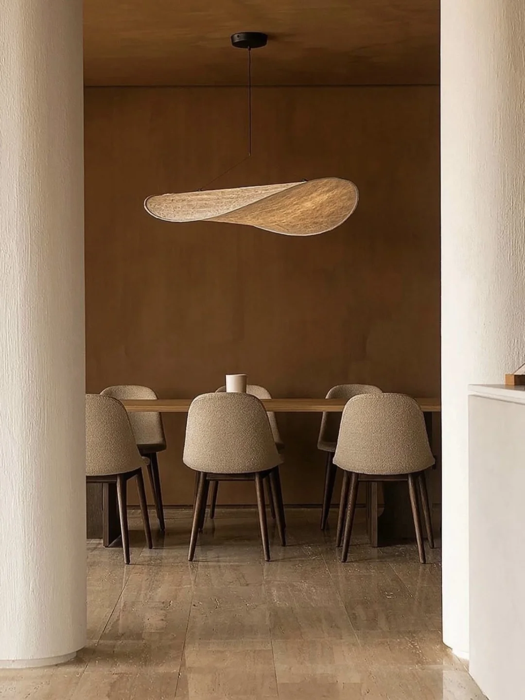 Androgyne 边几、Offset 沙发和Harbour Side 餐椅,与陶土色调的墙面、天然石材地坪以及柔和的环境照明自然融合,在富于当代感的优雅和温暖的待客氛围之间取得了和谐的平衡