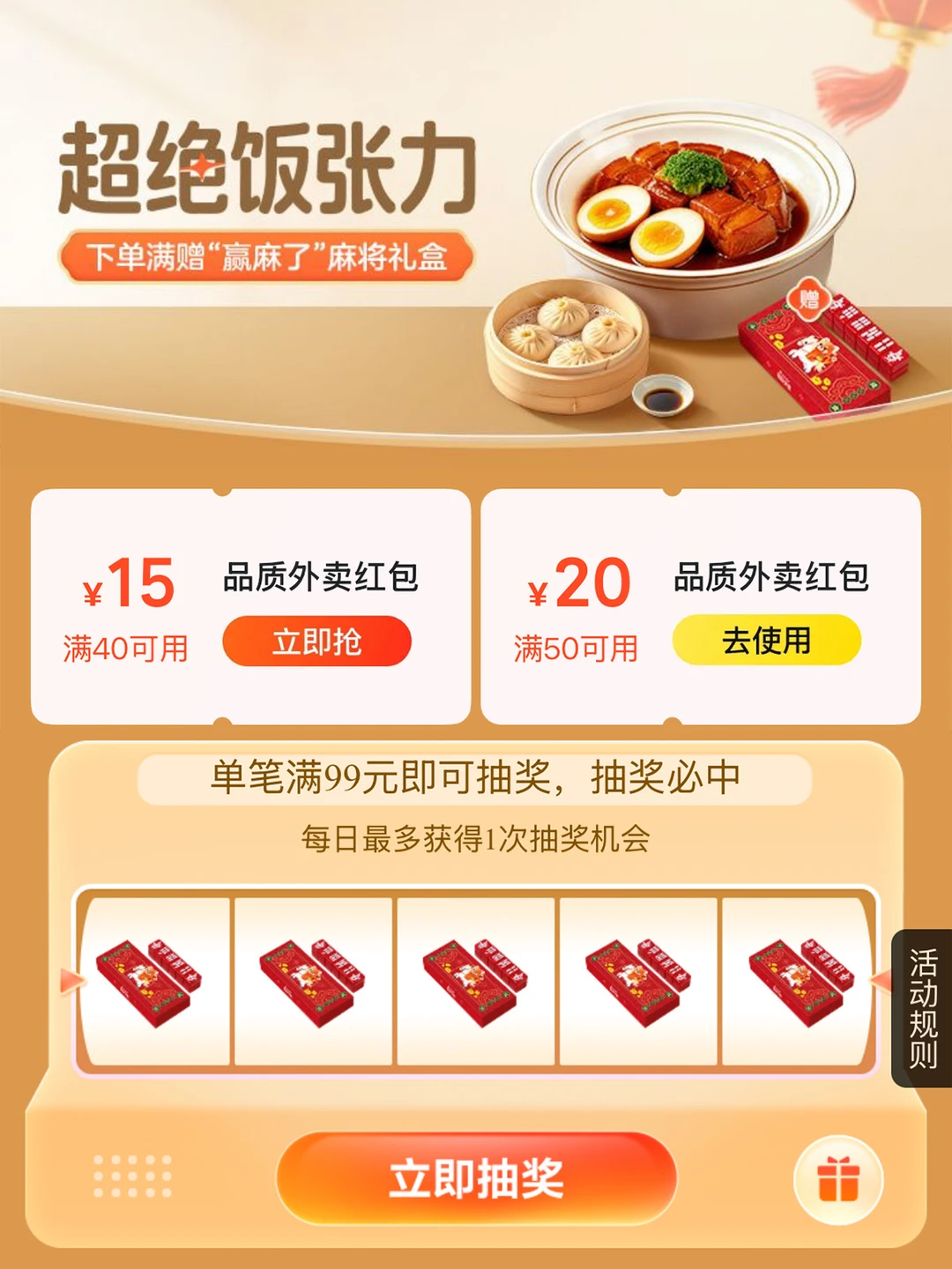 而且2月6日前还有满99的抽奖活动,可以得到春节定制麻将1套,过年能约上亲朋好友玩起了!