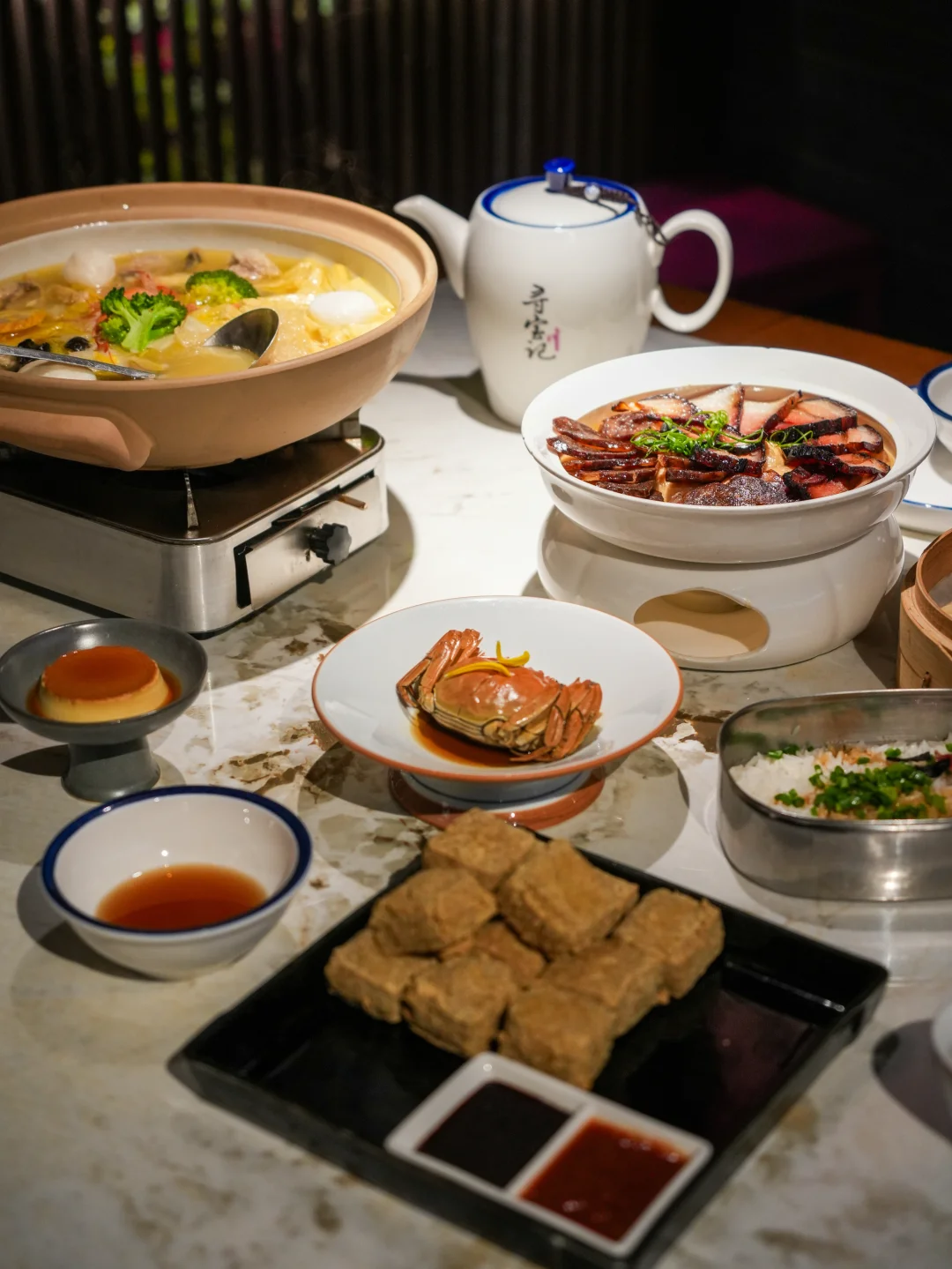 来到绍兴,定要尝尝正宗的绍兴菜。「寻 宝 记」 是本地人也常去的地儿,能将一城风物化作舌尖至味。绍兴醉蟹的鲜甜裹着酒香,绍三鲜的汤暖到心里,臭豆腐外脆里嫩,黄酒布丁滑如凝脂。再点上一杯黄酒奶茶——这才是绍兴的年味啊!