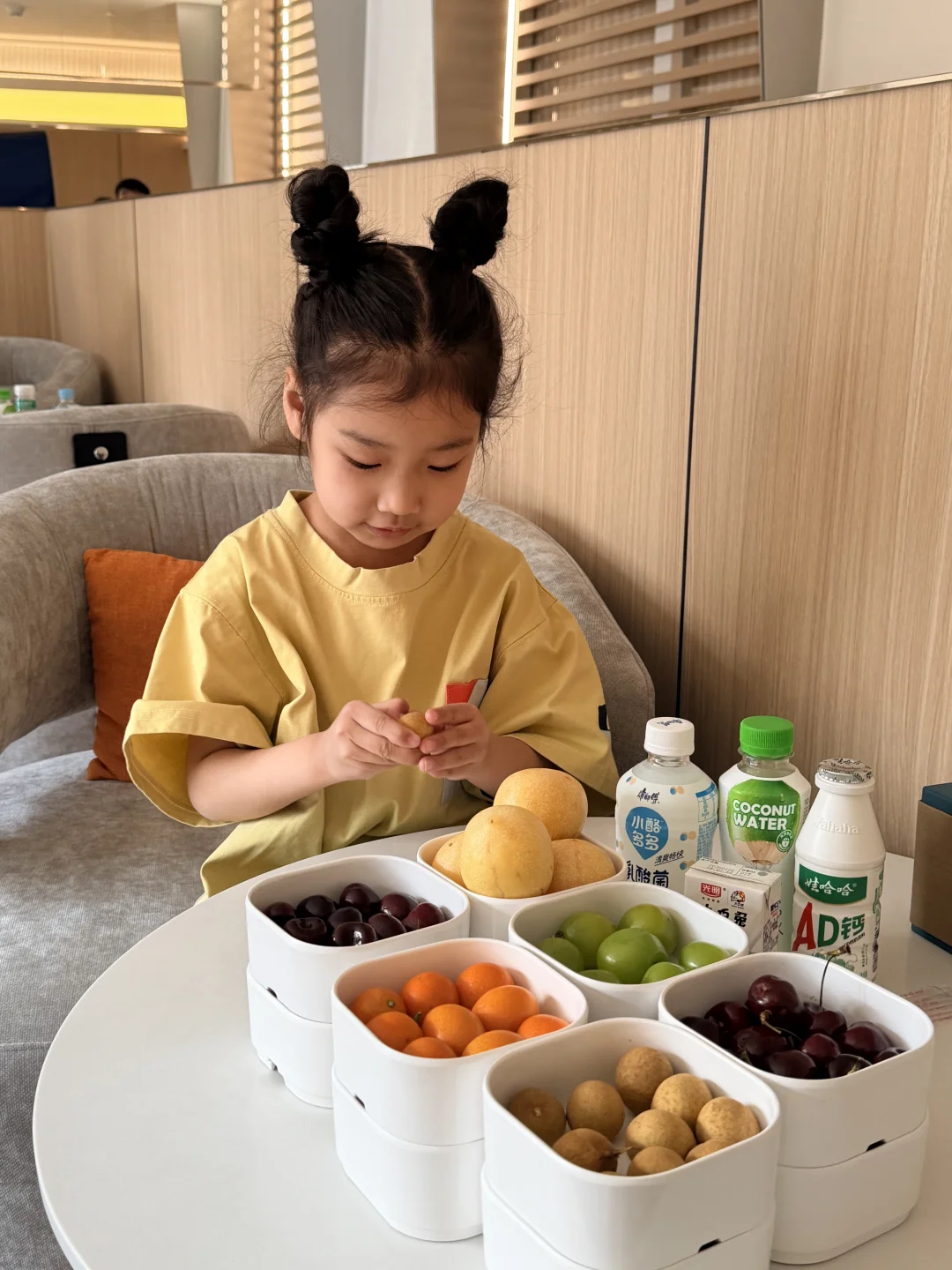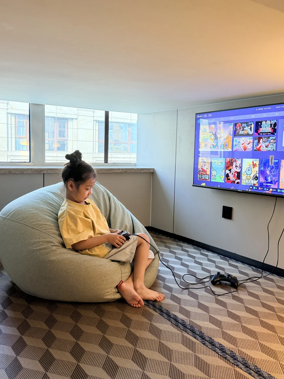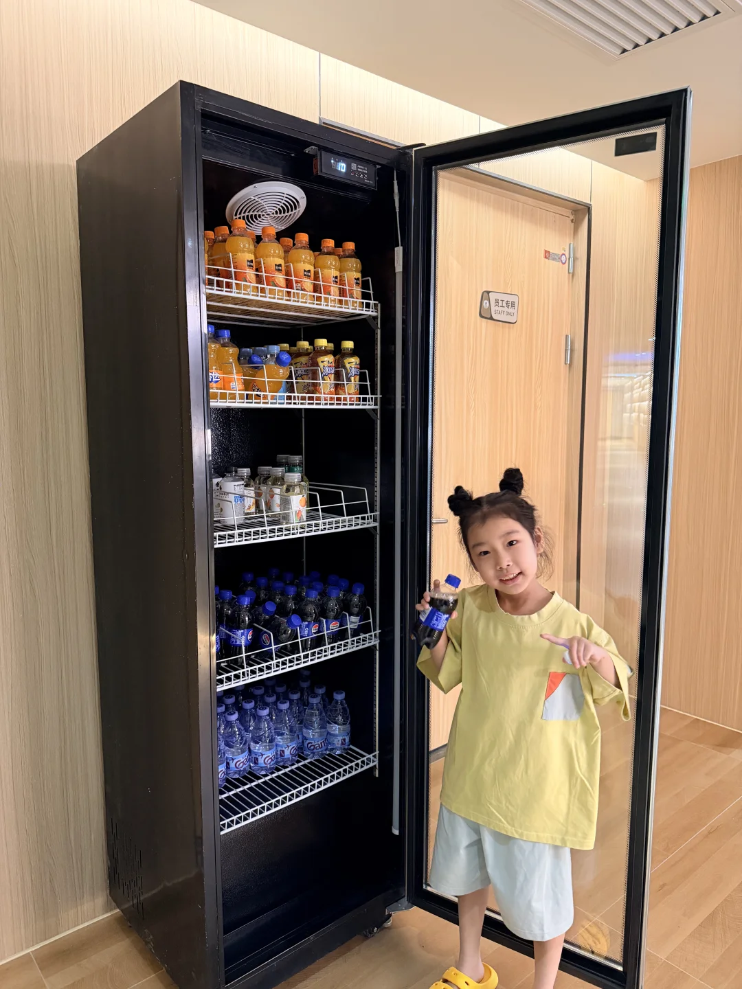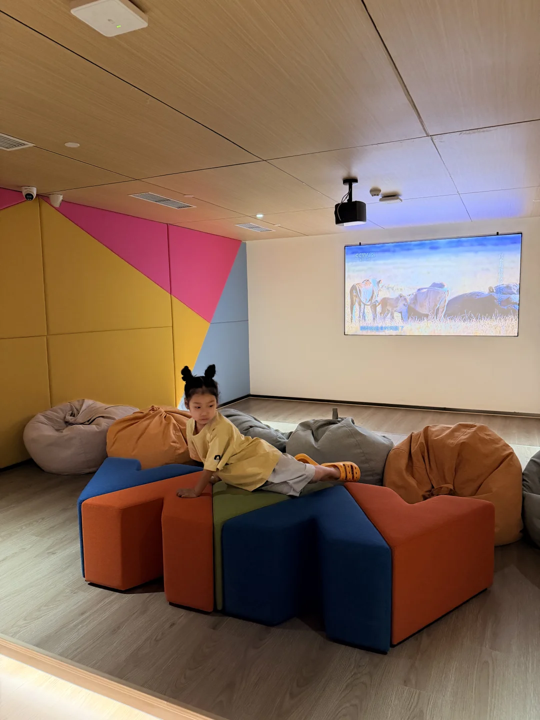 公共区域更是戳中带娃党❤️ 水果吧台🥭、潮饮区🥤无限续杯,新鲜水果随时补,娃渴了饿了随手就能拿,不用额外花钱!还有专门的儿童活动区,滑梯、小玩具齐全,胶囊影厅🎬 循环放小朋友喜欢的动画,娃自己能安安静静待好久,实现真正的带娃松弛感😭