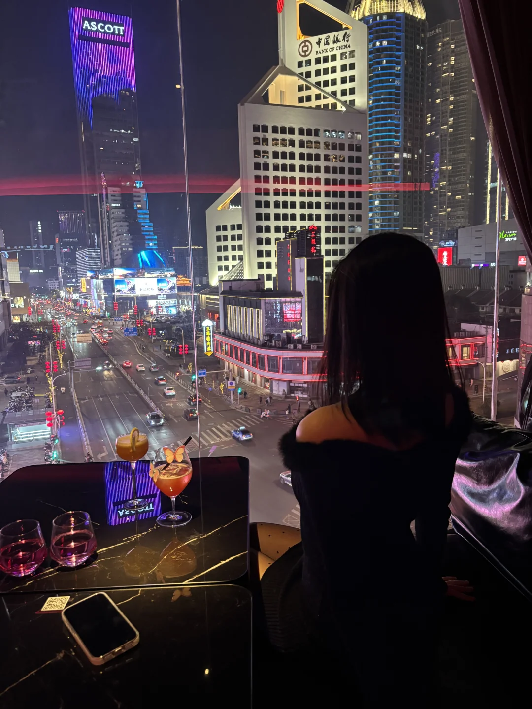 微醺moment🥂又和小姐妹一起去小酌啦 一家安静的bar ,很适合两个人去小酌聊聊天谈谈心,能俯看无锡市中心样貌[点赞R]这个光线昏暗,脸拍不清,拍背影还是不错滴。