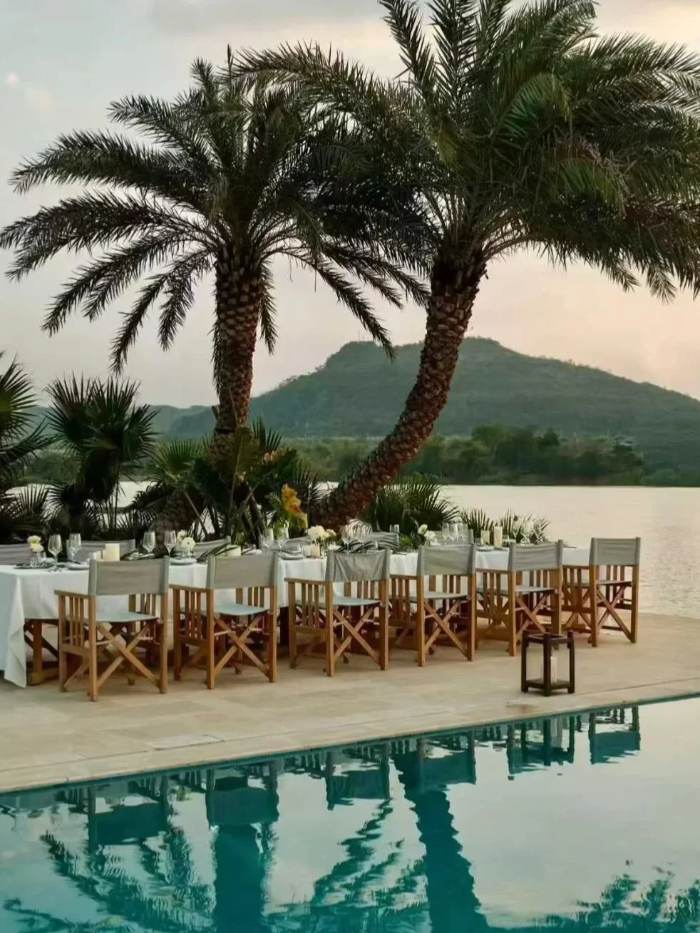 2️⃣ 私汤观星,浪漫浓度超标! 房间自带露天私汤泡池🌌。晚上边泡汤边看星星,对面是水墨画一样的峰林,这体验绝了!