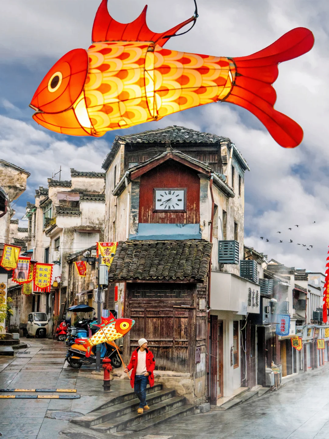 上午抵达歙县➠入住古城附近➠逛徽州古城➠渔梁坝坐船➠夜游看鱼灯巡游+《徽州府有喜》沉浸演出