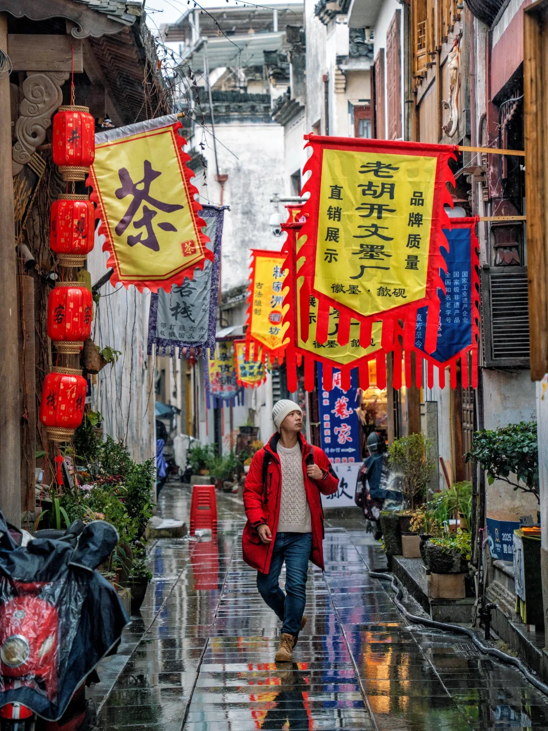 坐在古城长椅上,耳边是徽剧的咿呀,眼前是匠人凝神雕砚制墨;乘着老式小船在碧波上荡漾,抬手间又与家人共做一盏鱼灯;方才还在船头远眺大雁掠过长空,转身已在廊桥下,伴着流水声与老人闲话起桑麻…
