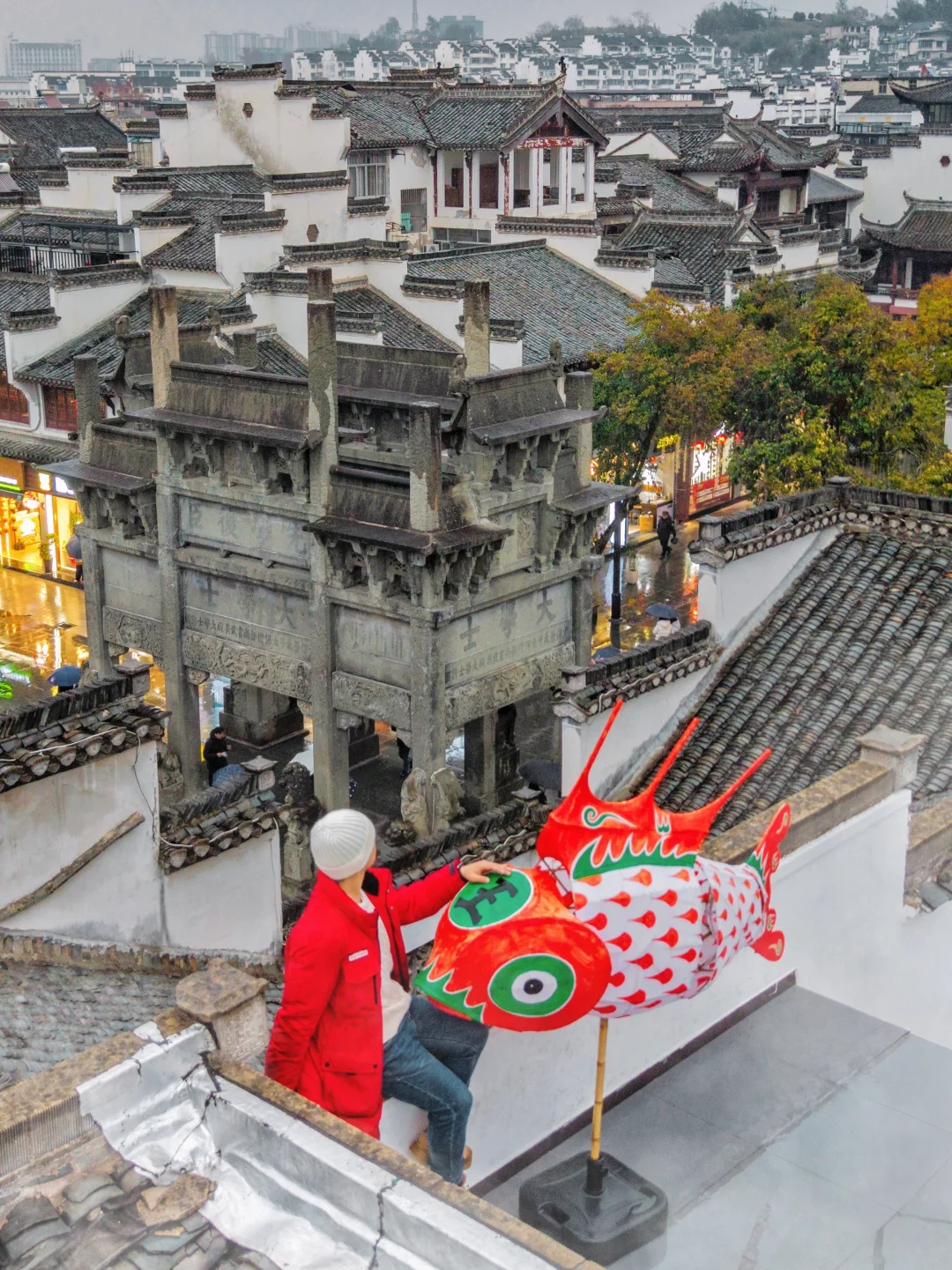 国内的四大古城之一,全国唯1️⃣的“八脚牌楼”许国石坊在这,太震撼!到处挂着鱼灯,做个非遗鱼灯,怎么拍都好有年味~