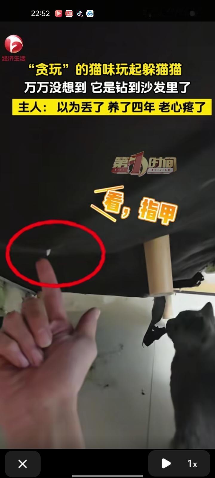 2月3日,陕西西安。“贪玩”的猫玩起躲猫猫,主人寻找时发现它钻到沙发里,指甲都露出来了。猫走失之前,主人打印了50张寻猫告示张贴在附近小区 当事人称,对象发消息称猫丢了,一天都浑浑噩噩的,寻思着养了四年,丢了老心疼了,然后就找了一圈。发现沙发底下鼓包了,摸了摸还是热的。 猫找到后,去把之前张贴的寻猫启事给一张张撕掉了。