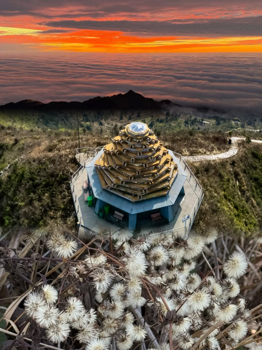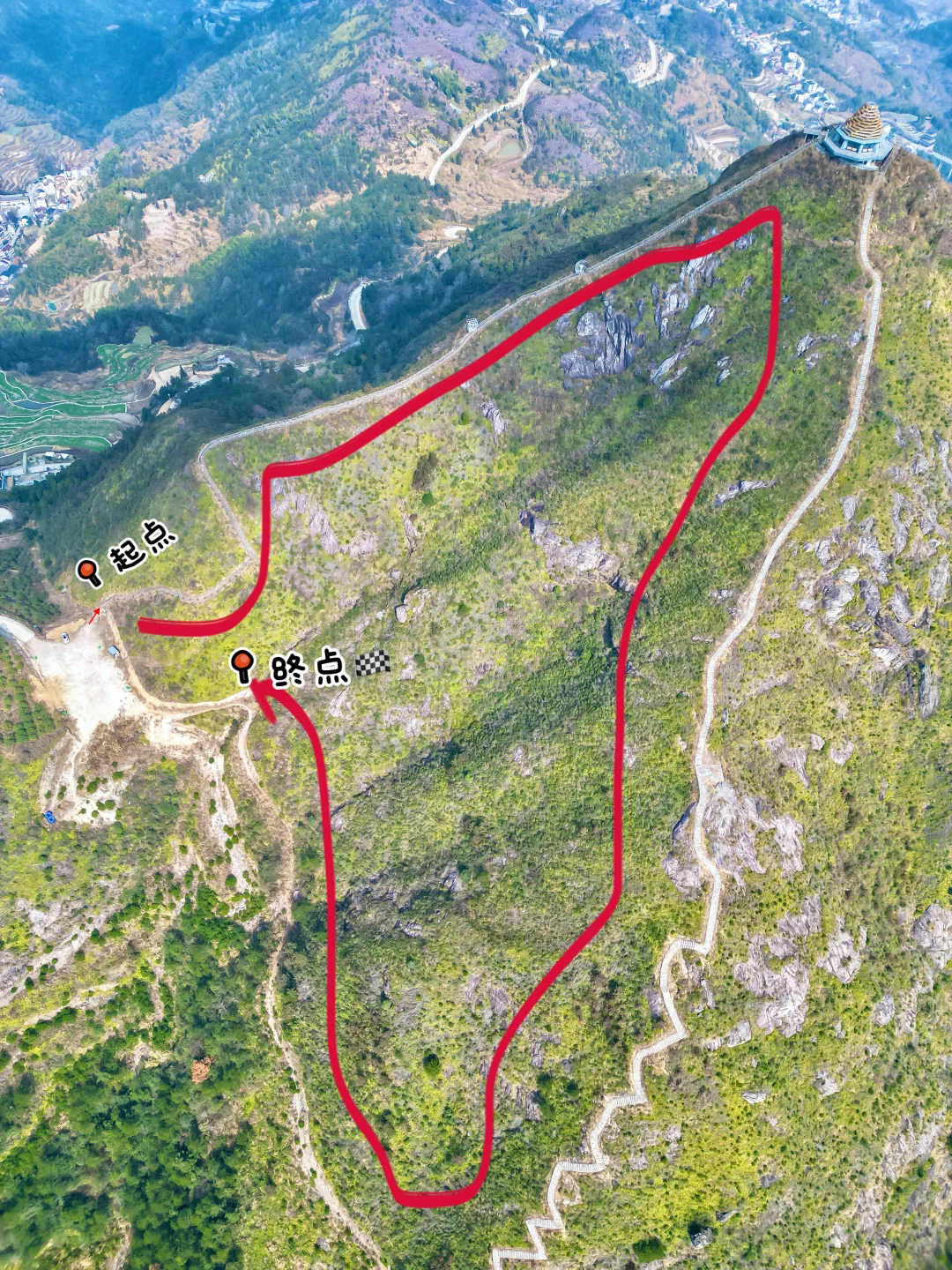 🔴懒人友好路线:车子直达“大尖山停车场”➡️栈道➡️山尖金顶➡️小舟山➡️停车场(大约3km)
