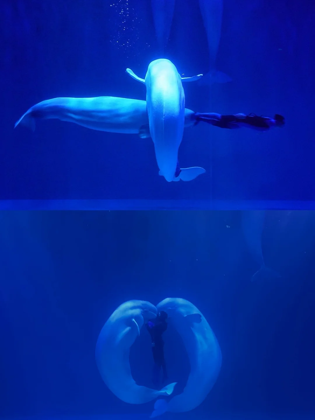3️⃣最佳打卡点,海底隧道,白鲸秀场,企鹅隧道,淘学企鹅!白鲸秀之前可以拍到和白鲸的合照,低角度仰拍可以得到干净的画面