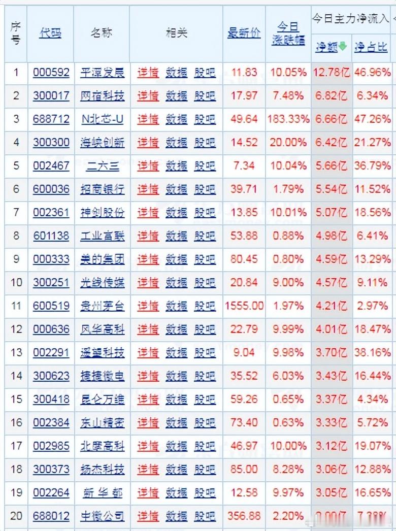 【财富晚茶】潜龙浮出水面:02.05主力资金:净流入前20股票