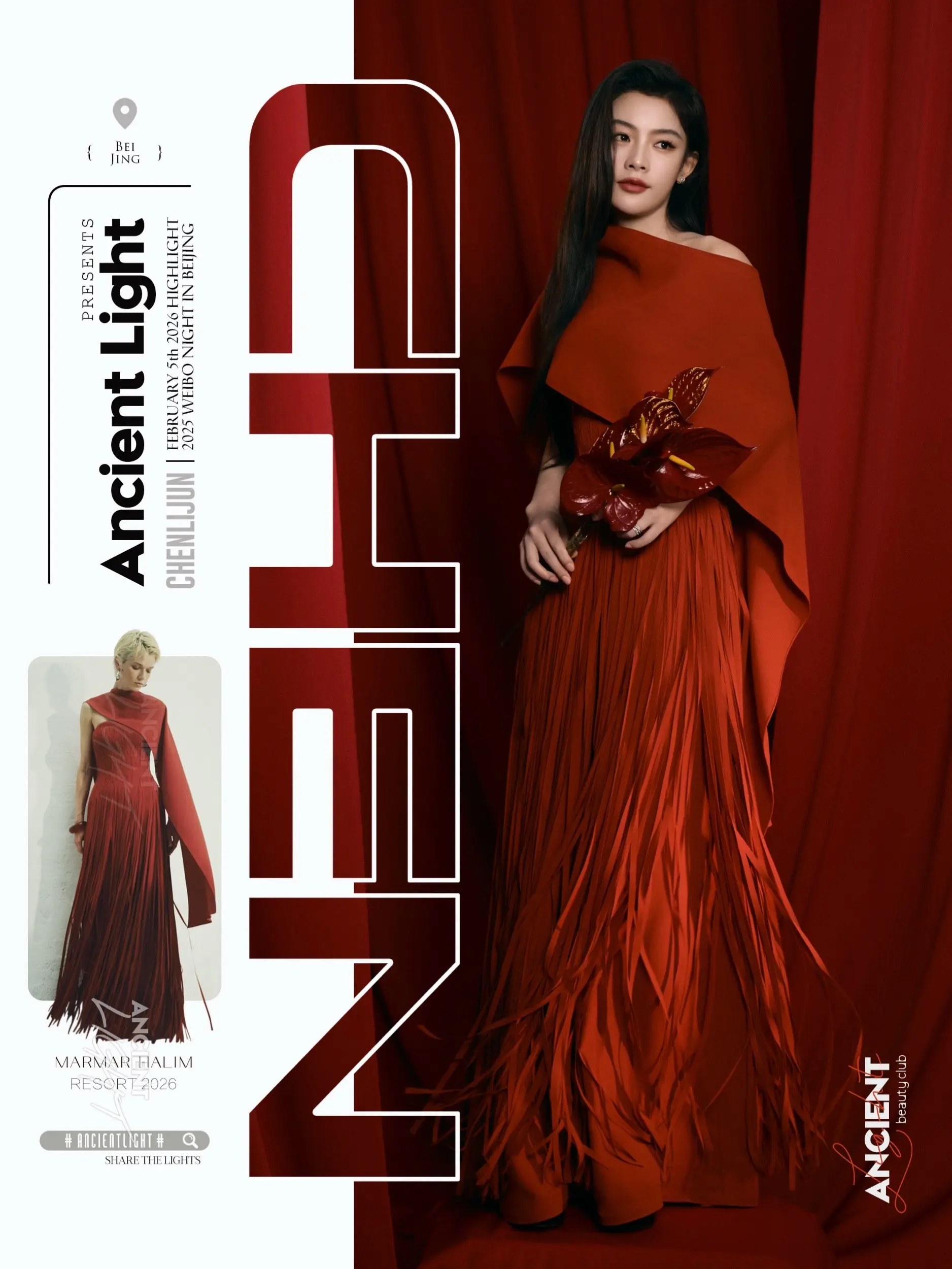 陈丽君·经济上行的美,一抹红给你点颜色看看 陈丽君身穿Marmar Halim Resort 2026系列斗篷披肩流苏红裙,私有种经济上行的美,淡淡的热烈,有点美好。