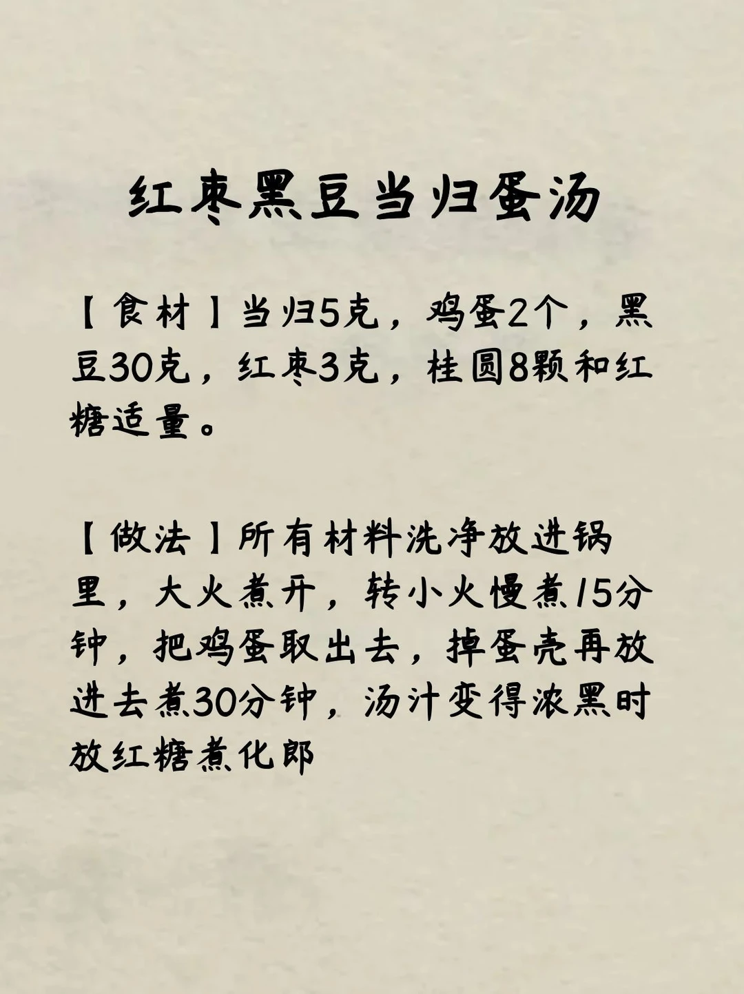 天哪!淤血堆积会引发这么多问题 快看看你中了几条👇 ✔腰腹赘肉顽固:像被强力胶黏住的小肚子 ✔肤色蜡黄长斑:皮肤像蒙着层灰扑扑的纱 ✔经期血块发黑:大姨妈总夹着碎冰渣似的黑块 ✔易燃易爆炸:分分钟变身人形炸弹 经期黄金排污期喝这三碗 ①当归黑豆元气蛋汤 ②黑豆益母草暖宫汤 ③山楂木耳红枣汤