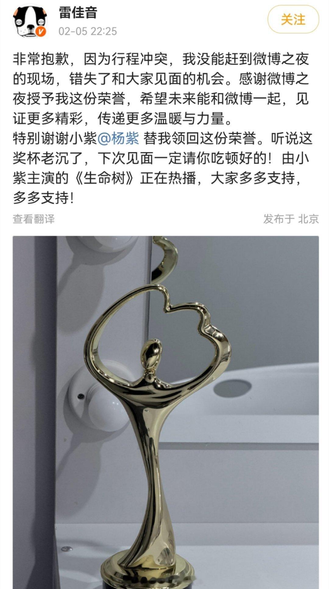 诶诶诶?杨紫和雷佳音什么时候认识的?微博之夜