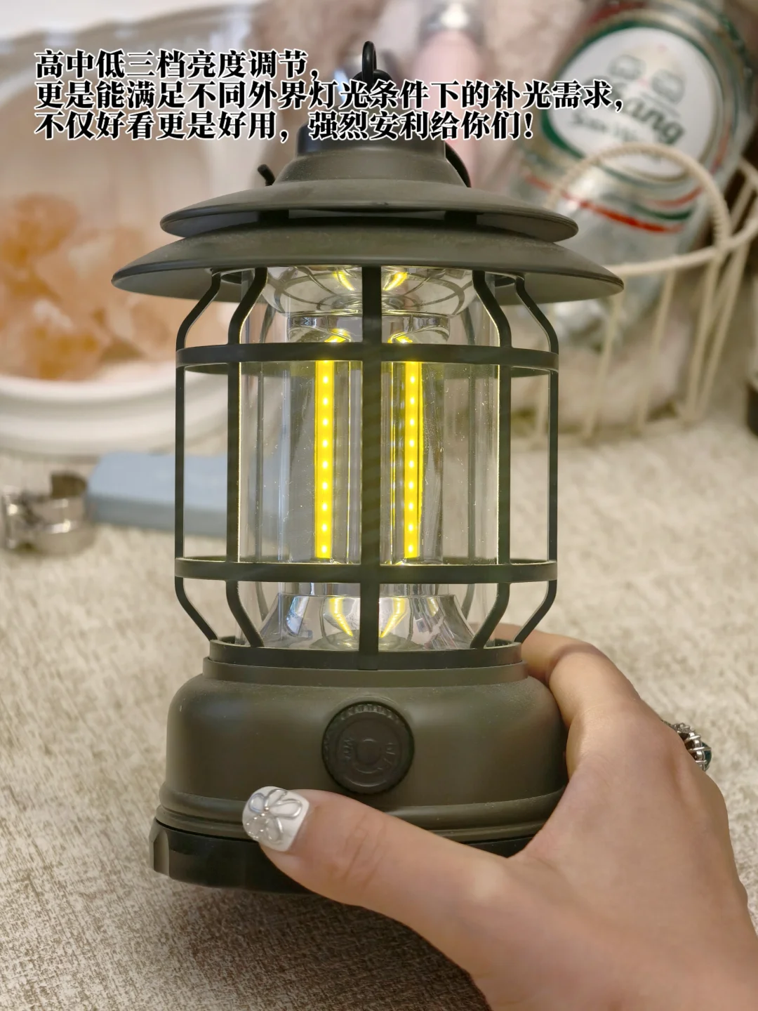这款露营灯简直是掌管我书桌氛围感的神!复古的造型设计,完全长在了我的审美点上,高中低三档亮度调节,更是能满足不同外界灯光条件下的补光需求,不仅好看更是好用,强烈安利给你们!