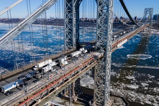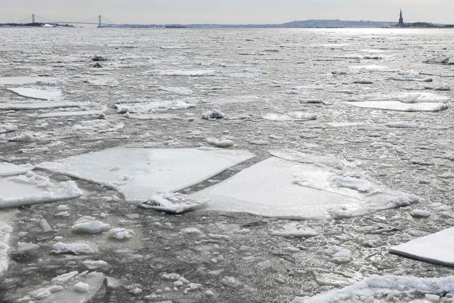 受极端寒潮持续侵袭,纽约东河、哈得孙河及纽约港大面积结冰,往日的水域俨然化身“冰河时代”场景。