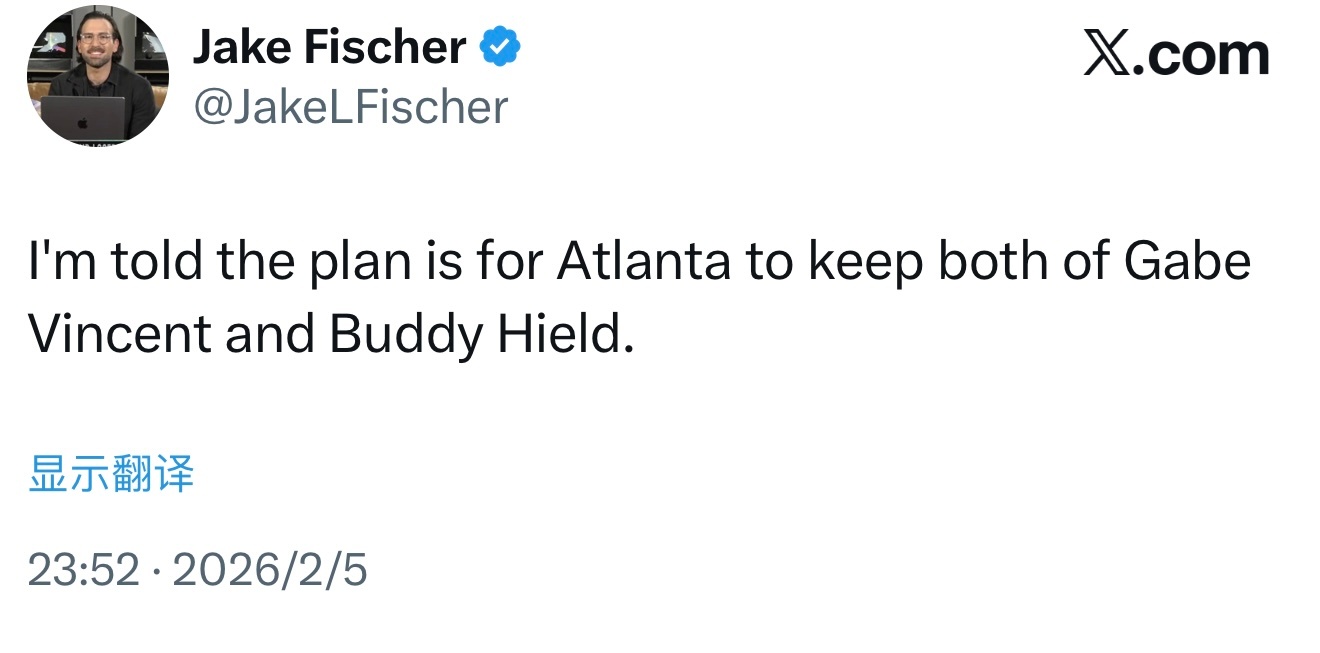 Jake Fischer:据我所知,老鹰计划留下文森特和希尔德。