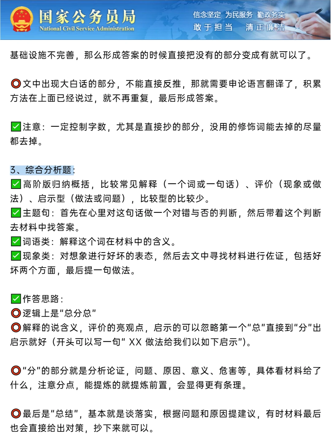 🔵申论答题经验:归纳概括题、提出对策题、综合分析题、贯彻执行题、大作文