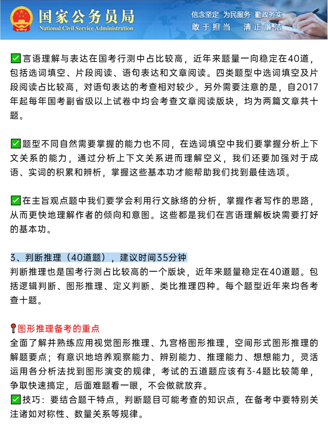 3、判断推理(40道题),建议时间35分钟