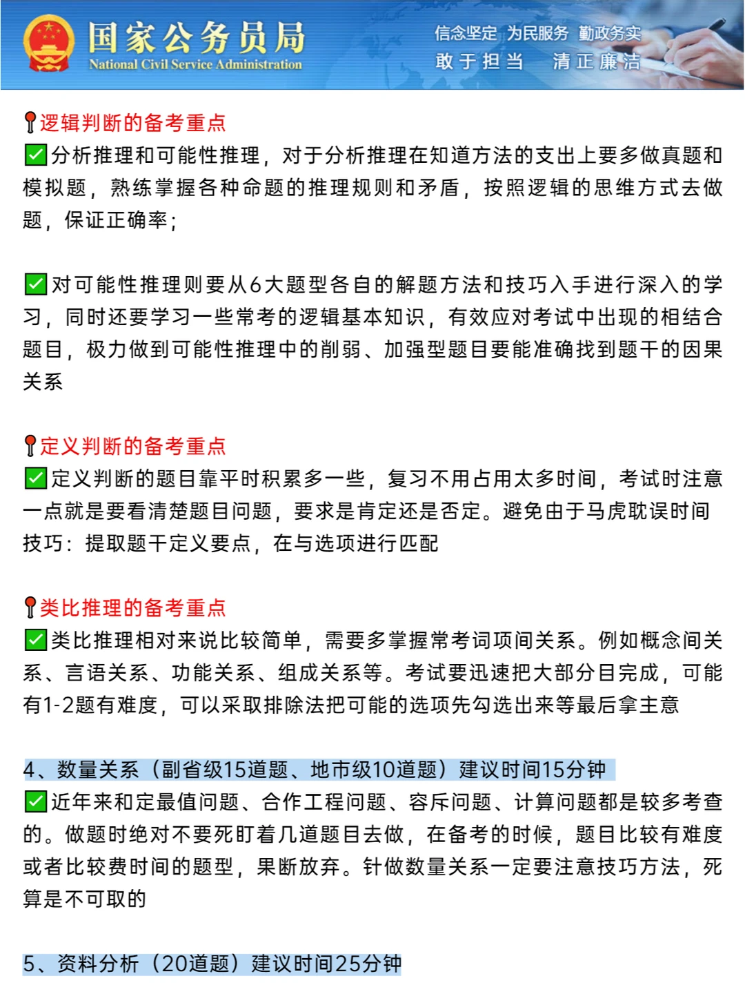 🔵行测做题顺序(仅建议):常识一言语一资料一判断一数量