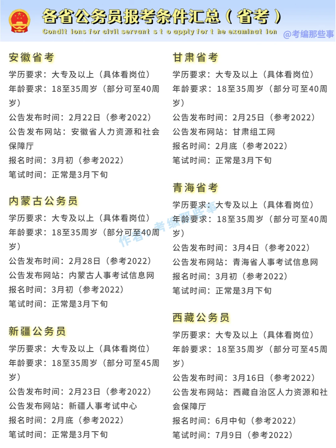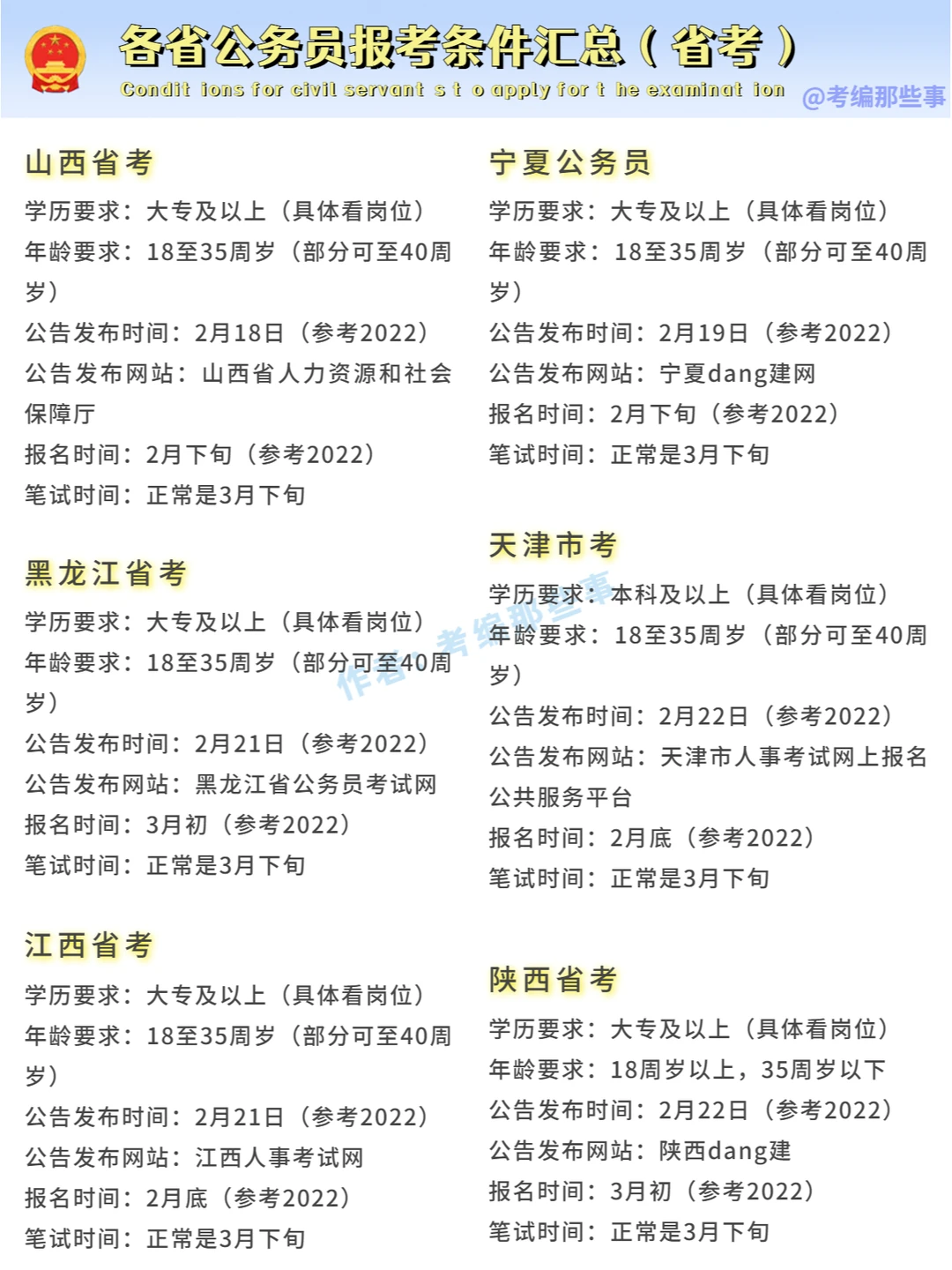 ⏩年龄要求:一般是18-35周岁,博士及特殊岗位可放宽至40或45周岁,具体以各省公告为主